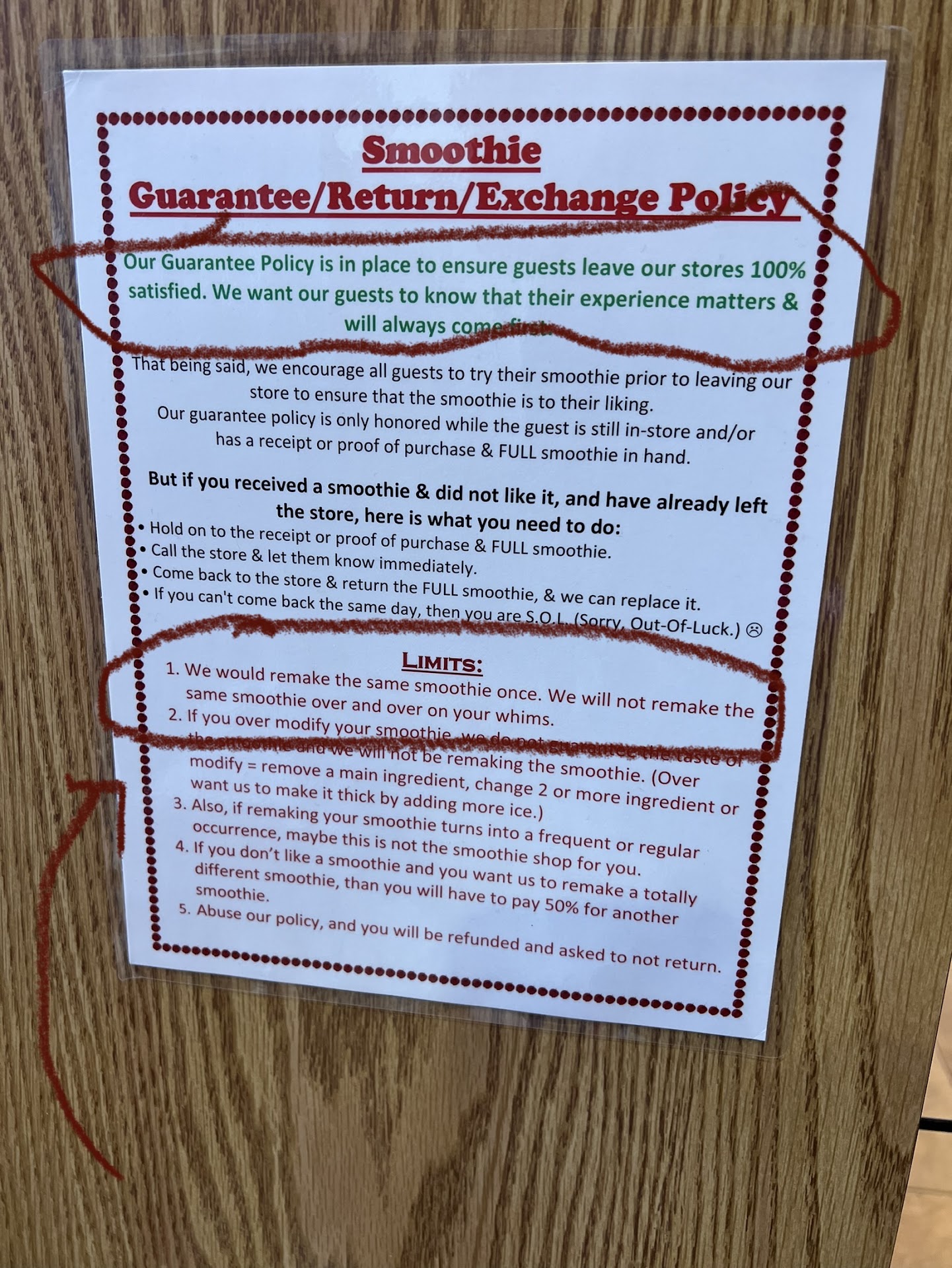 Update: after a two week period.I received a call from the corporate office of smoothie king and they corrected the issue and refunded me for everything.. I have been back to the HWY 5 location since the correction.. thank you so much...
