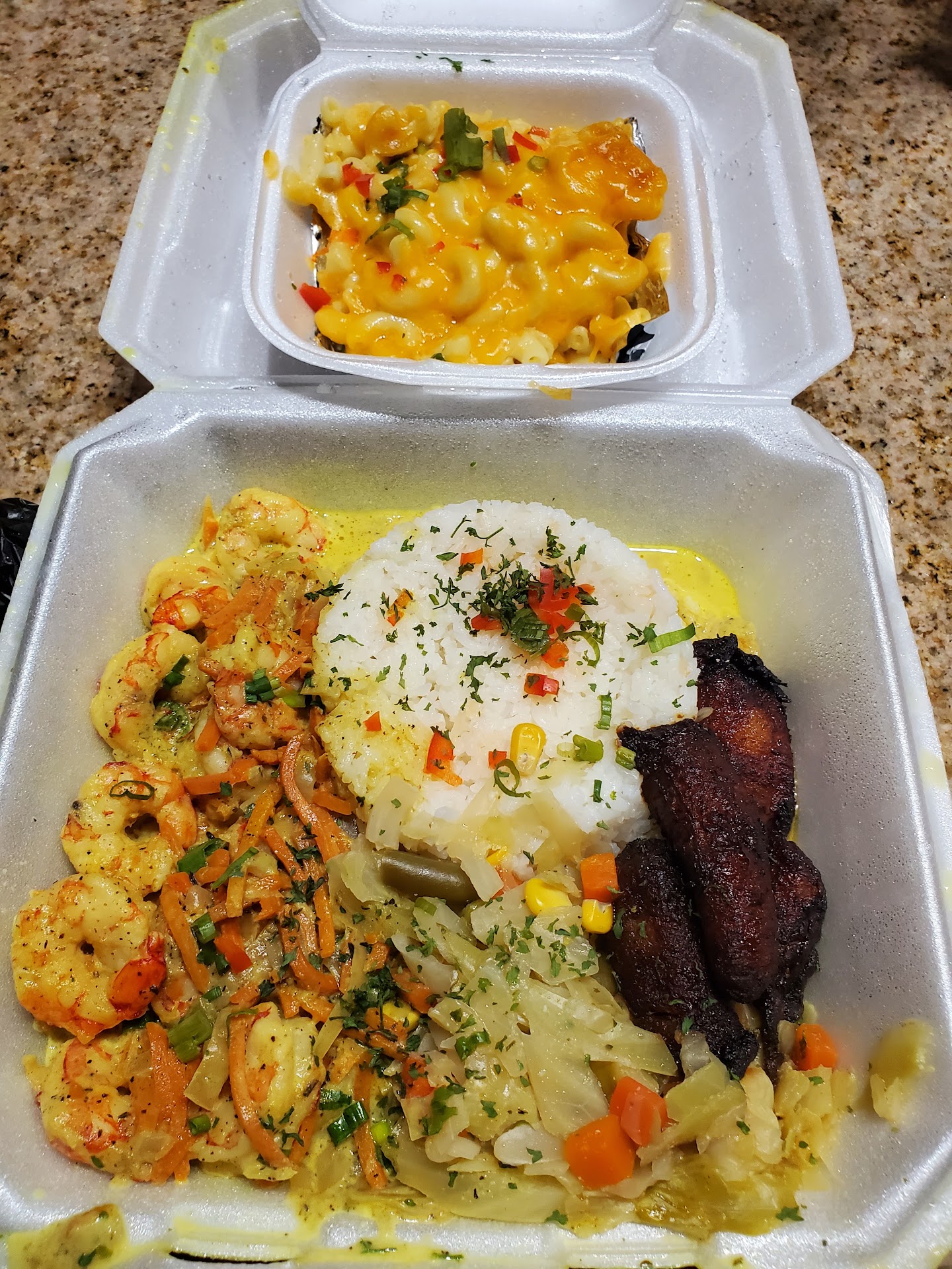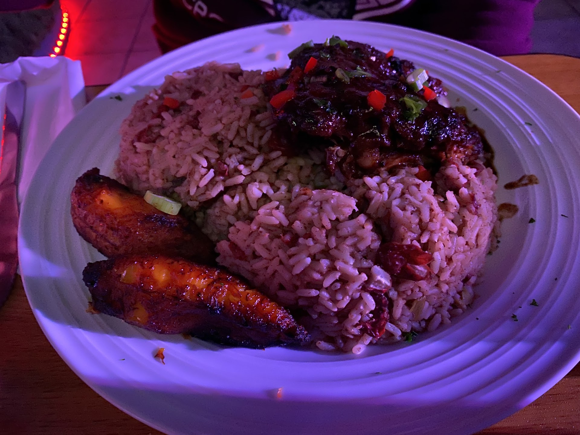 When my food arrived I had white rice on my plate and not rice & peas. No one had informed me they were out of rice & peas and I’d have to wait.