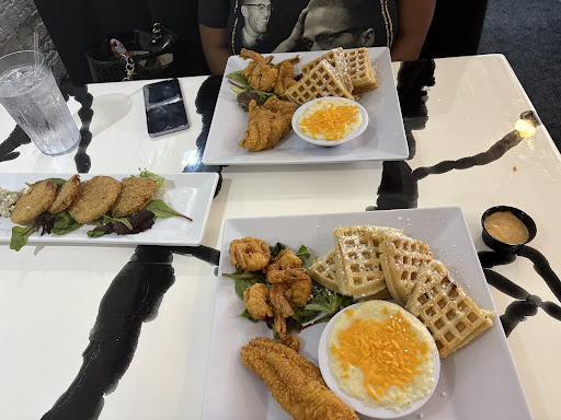 Worst experience ever, waited literally 2 hours and 30 minutes before being sat when we was clearly told it would only be a 30-45 minute wait time. Once my family & I were finally sat our server came to us to let us know that the kitchen was no longer taking orders. So we had to wait even longer on the food we proceed to order drinks and one of the drinks tasted like chemicals. I thought I was tripping but then I asked my mom and others to taste it and they definitely didn’t disagree, after sitting at the table for another 45 minutes we were finally able to order food. The wrong order came out twice and we had to wait atleast another 35 minutes before our correct food came out. For the wait time I was expecting freshly made food. The mac and cheese was cold as ice the greens was crunchy and tasted like they weren’t clean the chicken was old as if it had been sitting there for 6 hours under a heater. My mom waffles were crisp hard my brothers pasta had a string of hair in it. When I say the ENTIRE experience here was terrible I mean the ENTIRE EXPERIENCE! We then ask for the owner she took 20 minutes to come to the table then tried to turn around and blame us for all our concerns stating we were complaining since we walked through the door and didn’t try solving the problem at all. She was very rude with a very nasty attitude I just couldn’t believe what I experienced at this restaurant the customer service here is awful and not one time did she offer to correct the mistakes or offer any suggestions she just flipped the script and blamed us and was literally open to going back and forth with family about this. We proceeded to pay full price for the bill but we will NEVER BE BACK! The owner always speaks about God on social media but it’s obvious she’s just a masked demon! Her...
