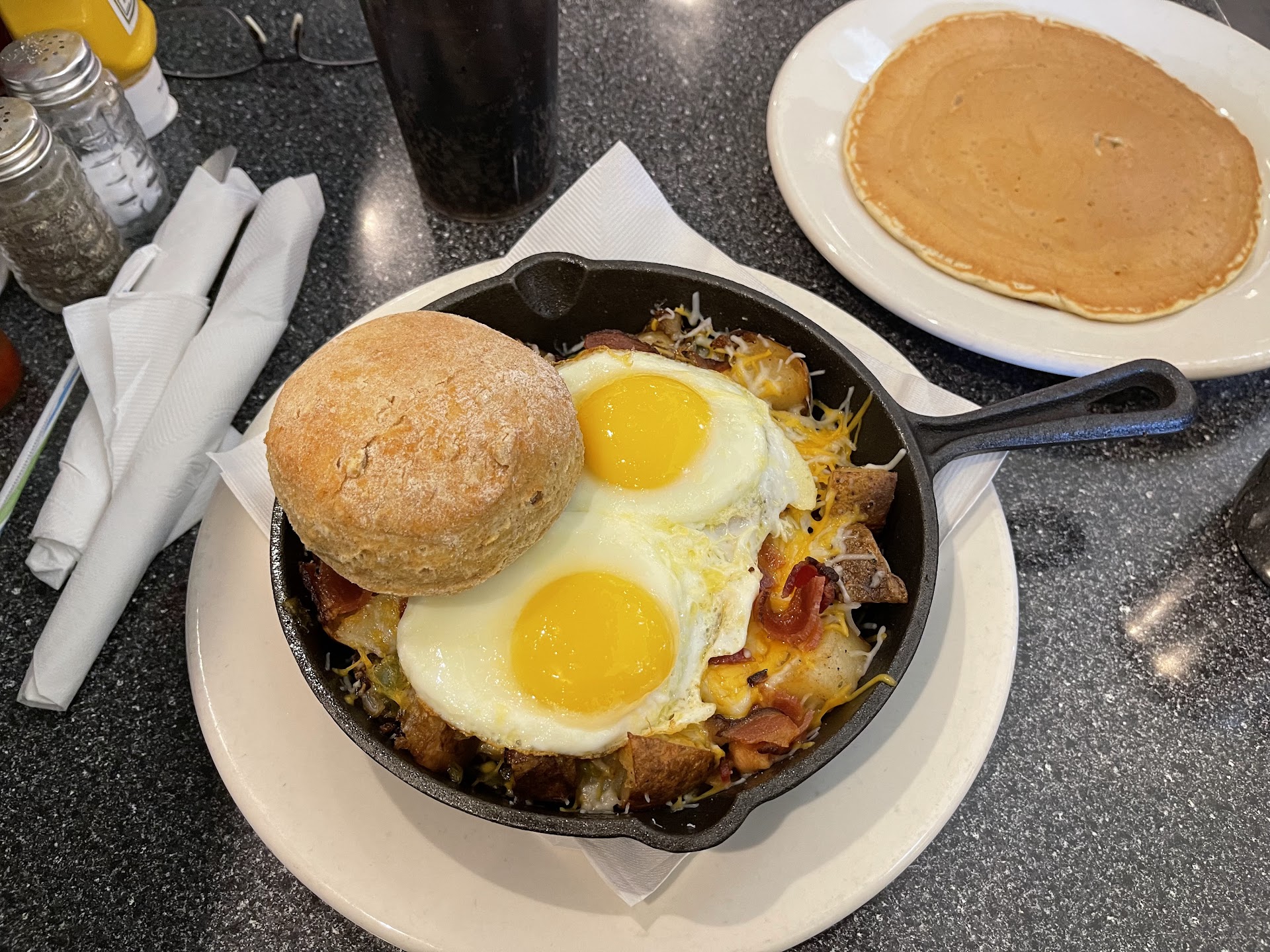 So we wait. And wait. And wait some more. No one is even refilling my coffee. My son has finished, we are both now just sitting there. I finally stand up after literally 25 minutes, go to the front, hey ignored for a good while, and finally get to tell a staff member to forget my order. I will pay for my son's and we are leaving.