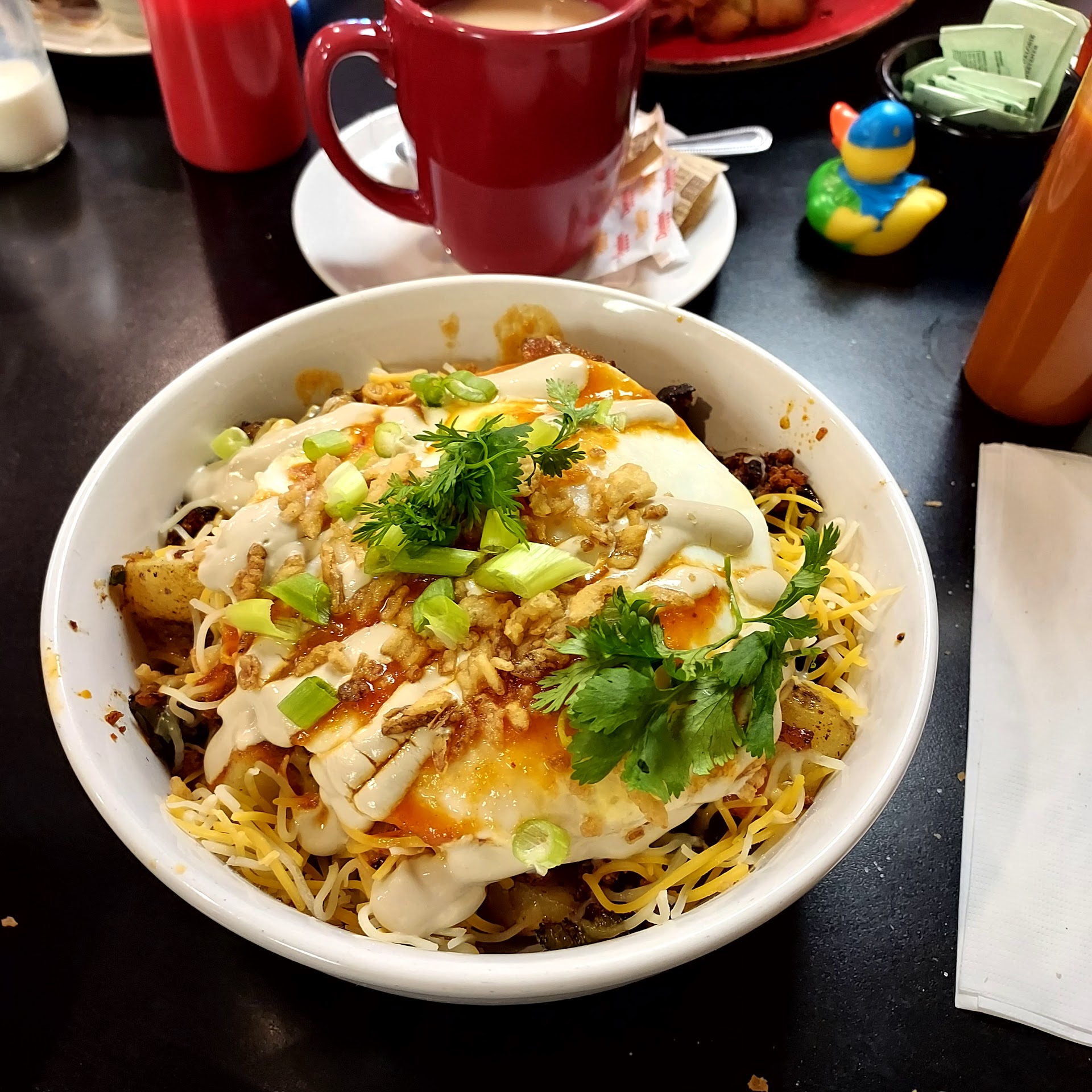 Read moreWhat a gem! So delighted to find this happening little space. It’s always a huge plus when the owner is busting it in the kitchen, and this guy was rocking it solo with just a dishwasher. Great vibes from the staff and you can tell by the decor that these people just know how to have a good time. Corned beef hash seemed to be started out boiled dinner style, as the potatoes were soft and delicious with flavors of beef! It’s always a real treat when you order hash and you’re not presented with a pile of dog food. The Captain’s French Toast was a fun, tasty rendition of a classic. Crunchy on the outside and soft on the inside. Perfect. The Perro Gordo was a very well done version of huevos rancheros. Homemade salsa was on point and you can never go wrong adding chorizo to this breakfast classic. You can tell the owner cares about his craft, as you can taste it in every bite. The server was mobbed, but did an outstanding job of checking on us and making sure our coffees stayed full. Food or service didn’t suffer one bit on a busy Saturday. Overall an outstanding first experience and I can’t wait to...