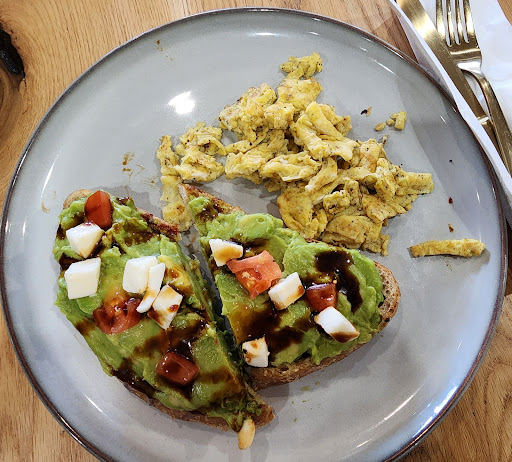 Read moreStopped here for breakfast. As a self-proclaimed coffee connoisseur, I have found my new favorite coffee place! I ordered an iced-latte with oat milk, honey and fig syrup, and coffee cubes (🤯—so my coffee didn’t get watery). It was so rich and smooth, I am ready to go back! I also ordered the Avacado toast with tomato and balsamic, delicious! My husband had the breakfast board and it was generous portions and said everything on his plate was delicious, best breakfast he’s had!! We tried a ginger shot with cayenne, mmmm! We will be coming back! Highly recommend!...