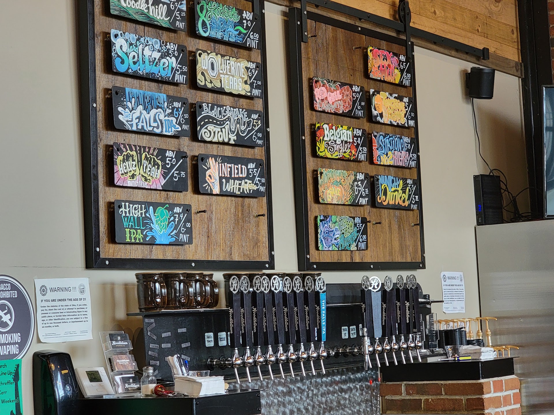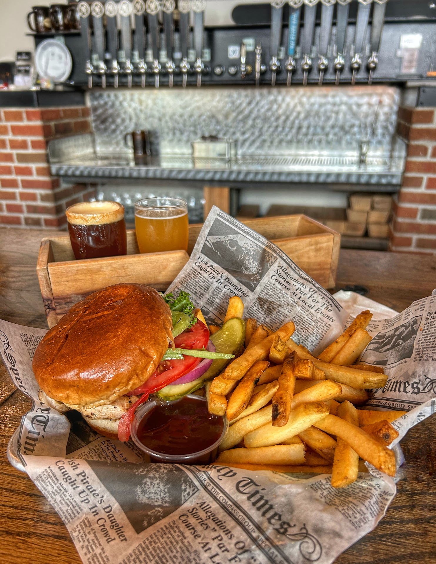 Read moreHere's the skinny showed up on a Saturday early evening and we're seated right away. Then waited 30 mins to then have to flag the manager(possible owner) down and say hey we haven't seen anyone to our table to take even a drink order. He took our drink order and did give me a free beer (it's why I gave 2 stars instead of one) Tried the Cherry Wheat and tasted good but felt like it was too carbonated. (I have worked at 3 breweries in the past and know beer pretty well) Now the food me and wife ordered burgers with tasted like frozen Bubba brand burgers, the bacon jam was good but could be from a jar and honestly the best thing we had was the fries which were the normal fries you get anywhere. Also what kind of resturant has there (possibly) tipsy patrons go retrieve their food (mind we were up a set of stairs), screams liability. Also one of the staff (our waiter) shit talked a beer as too foamy, which as an owner I would have put him out of a job right then as you bring concerns to management not to the customer. Overall probably will never come back as me and the wife have been spoiled by other breweries in the surround area with both better food and better and more...