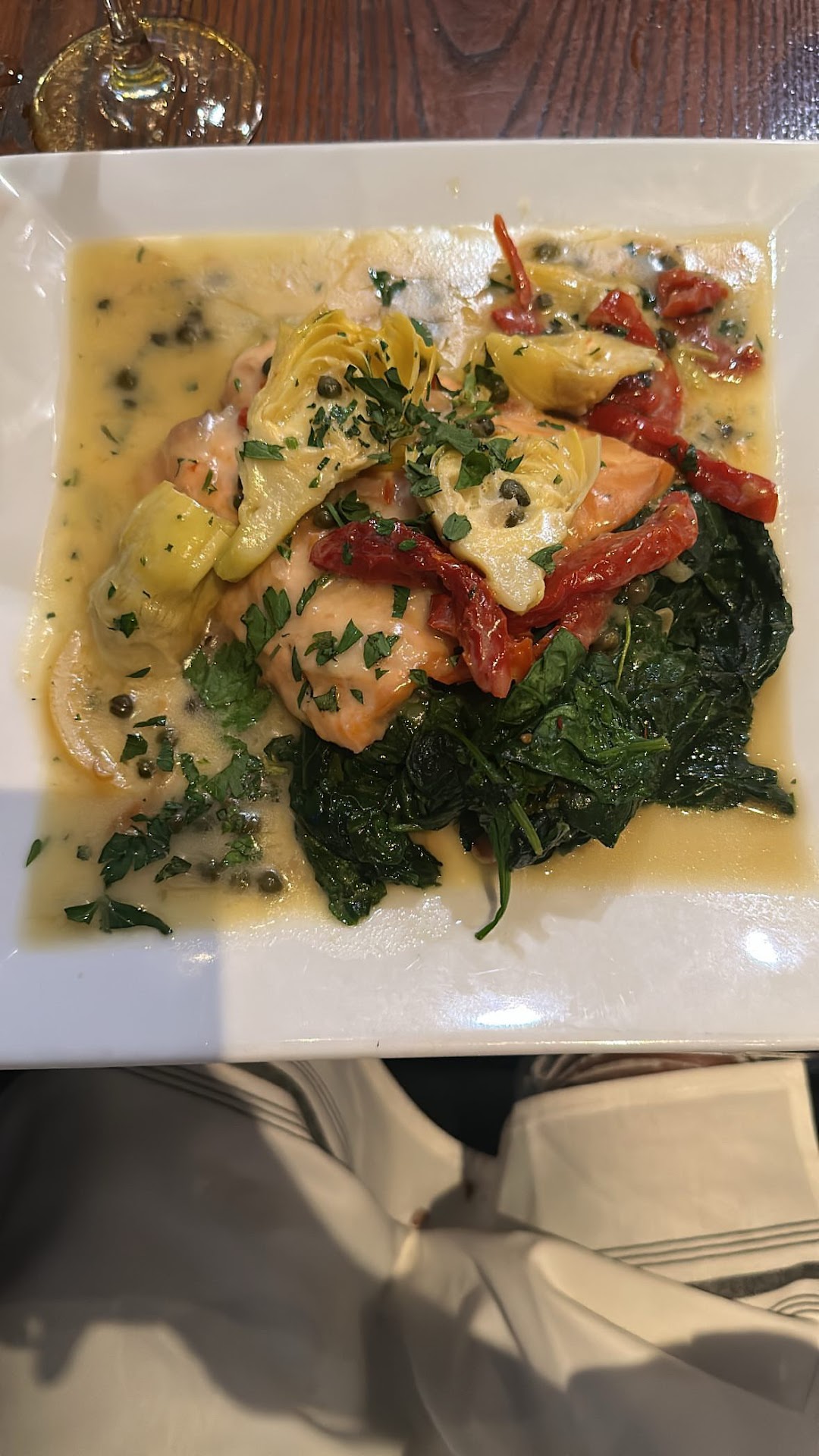My husband order the penne and vodka sauce. The vodka sauce he buys as BJs had more flavor than this sauce. I had the chicken parm and swapped out the pasta with risotto. The parm was very underwhelming and bland. The risotto tasted exactly what mine tastes like that I make in a pressure cooker. For $25 a plate, we expected our dinner to be very good.
