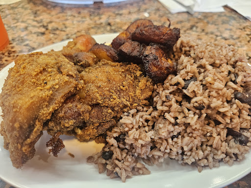 Stepping in John's an up to the counter. You see the good looking food many choices. Where do I what do I order. Wife ordered the chicken seasoned white rice red beans and tostones. Daughter and S/O ordered seasoned chicken with yellow rice and tostones. I ordered fried chicken black rice and tostones. Lemonade for the three and told the Hostess to pick whatever for me Strawberry Lemonade fit for a King đ