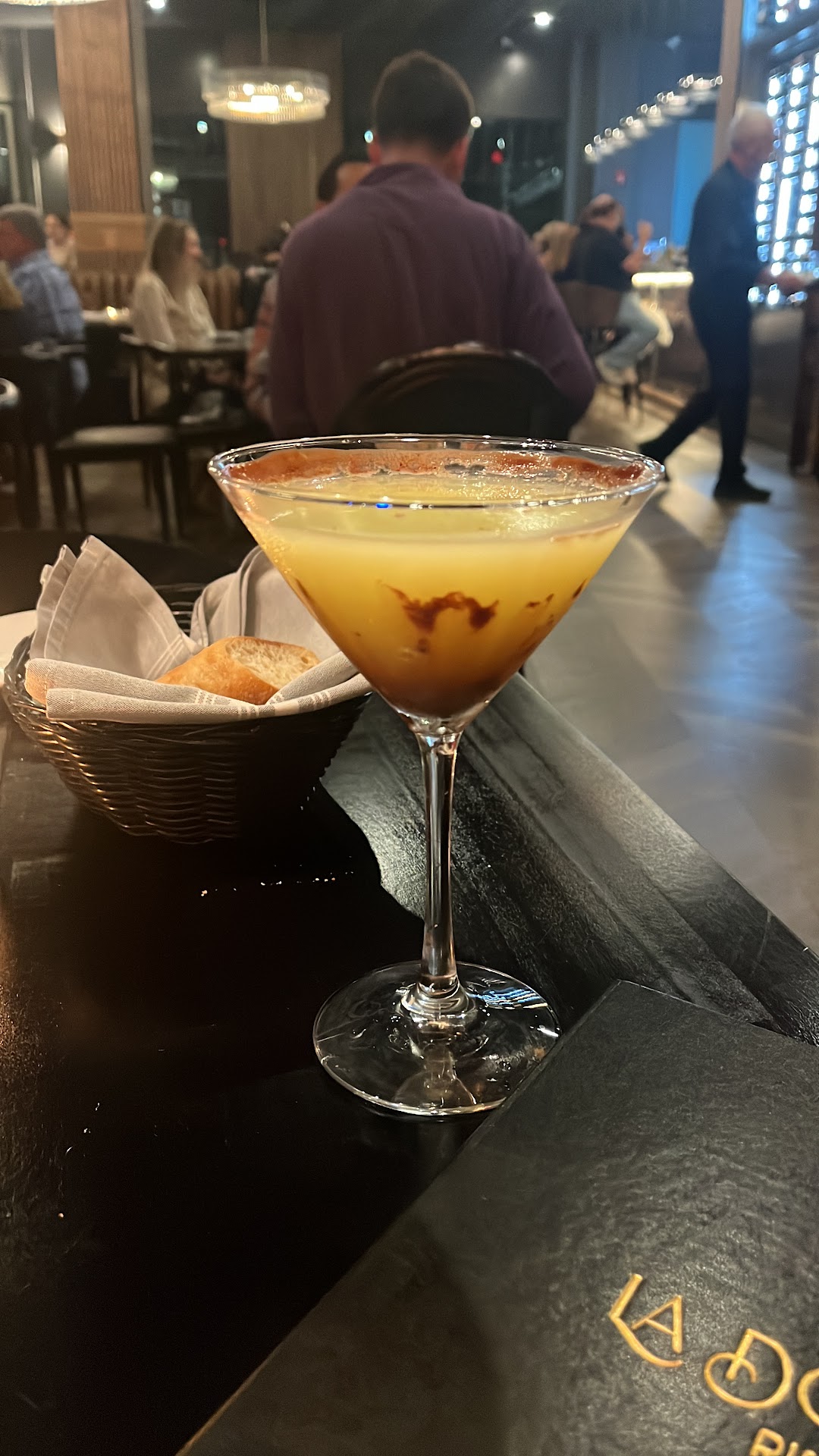 The space is small but so elegant. You could dress up like we did, but we also saw casual families with kids and people of all ages. They had many different types of seating, from high top to banquet to tables of all different sizes and combinations. There is an elegant bar with a large TV with no/low sound showing National Geographic. We were amazed that with all the people in the room it was incredibly quiet and it was easy to have a conversation, which has not been the case it some other nice restaurants we dined at recently.
