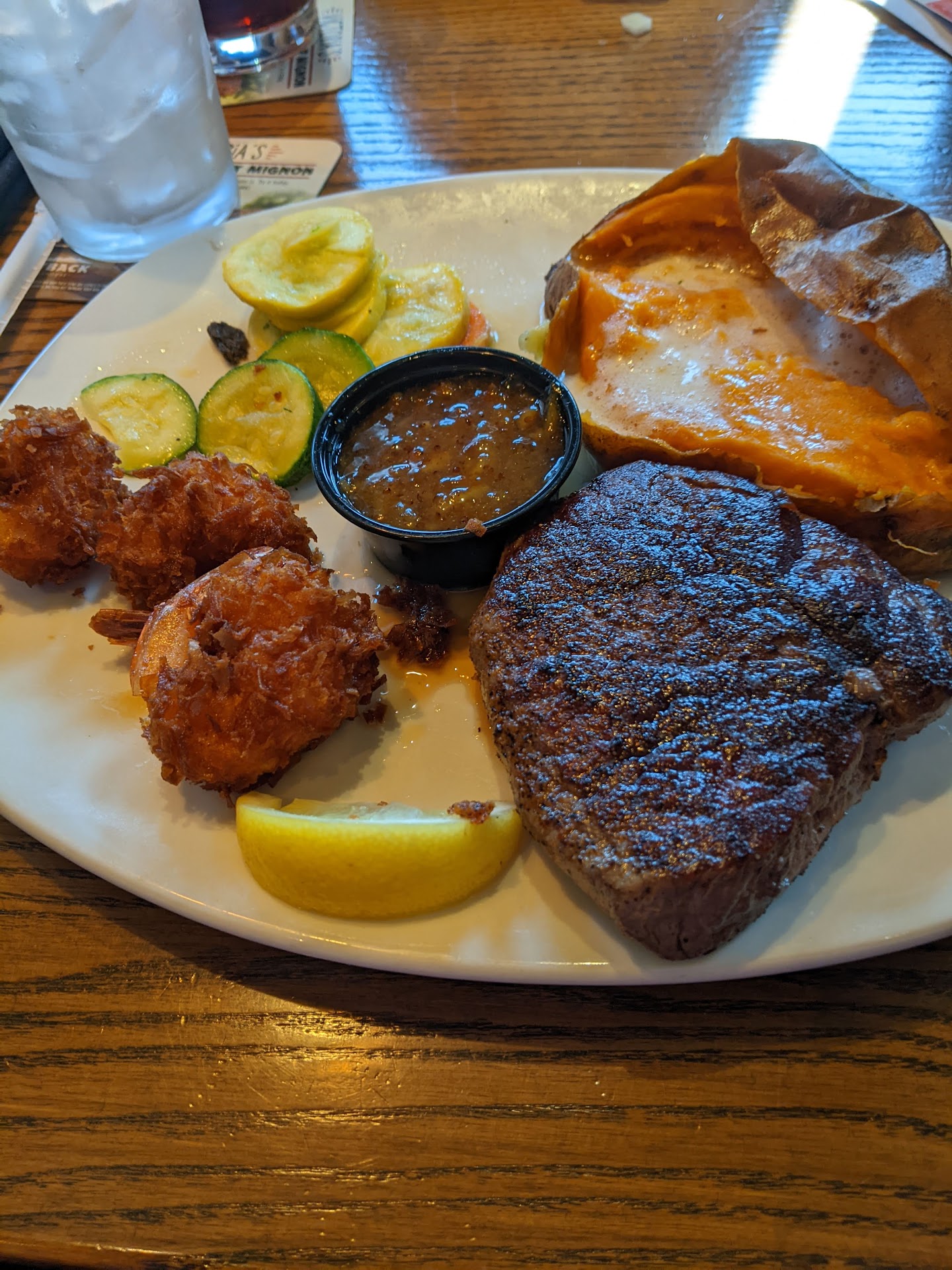 It's a chain. I know this. But man...the few times we have been to Outback (various locations) it is always the same story. Poor service and mediocre food that is overpriced. We decided to go a few nights ago because we had a gift card we wanted to use. We were immediately seated, but then waited almost 20 minutes for service. It was around 715pm and although there were other customers, the restaurant was not busy by any means. A server did stop by about 5 mins after we got there and told us they would be with us shortly. But it was not shortly. I understand being busy, but seeing the server stand on the other side of the bar and chat with a few coworkers for a good 5 minutes was also not very assuring during our wait. We ordered our meals and asked for salads with them. The salads were typical, but the dressing looked and tasted like a giant gob of mayonnaise (asked for ranch) almost as if they forgot to add the ranch spices. The onions in the salad were the size of onion petals, which also was not appetizing. I did not eat my salad and left it on the edge of the table to be picked up because it tasted that gross. The French onion smothered steak was decent, I asked for med rare and it was medium...but that's pretty normal in a restaurant. My husband got the ribeye and Lobster tail with the loaded brussel sprouts and fries. His steak was also over cooked, but edible. The Lobster was flavorless and rubbery, definitely not worth the cost. Fries were cold and the Brussels looked appetizing but were very undercooked..not talking steamed crunch but raw crunch. They also were in a lot of liquid which did not add to the flavor or texture. We were checked on twice during our meal...but then it took forever to get our check and even more time for our server to come back for the payment. We had giftcards and cash so we ended up leaving them for her since we didn't need to sign and she was no where in site. I don't understand the draw of this chain. Never have we had a good experience and the price/quality of food seriously is just not worth it. There is nothing special about the atmosphere either so truly, we don't feel any reason to choose an Outback for a meal at this point. We even heard a group at the bar commenting that "it is always hit or miss going to Outback when it comes to food and service"...that does not seem like a good selling point when choosing a place to eat. We definitely do not plan to go back to this location at all. Just as an added note, we would 100% choose Texas Roadhouse over Outback because we know the food is consistently cooked well and decently priced. Even on an "off night" where service might have been a little slow, we were still satisfied with our meal. We've also been to Longhorn and found that although they are a little more in cost, they too have consistently made a...