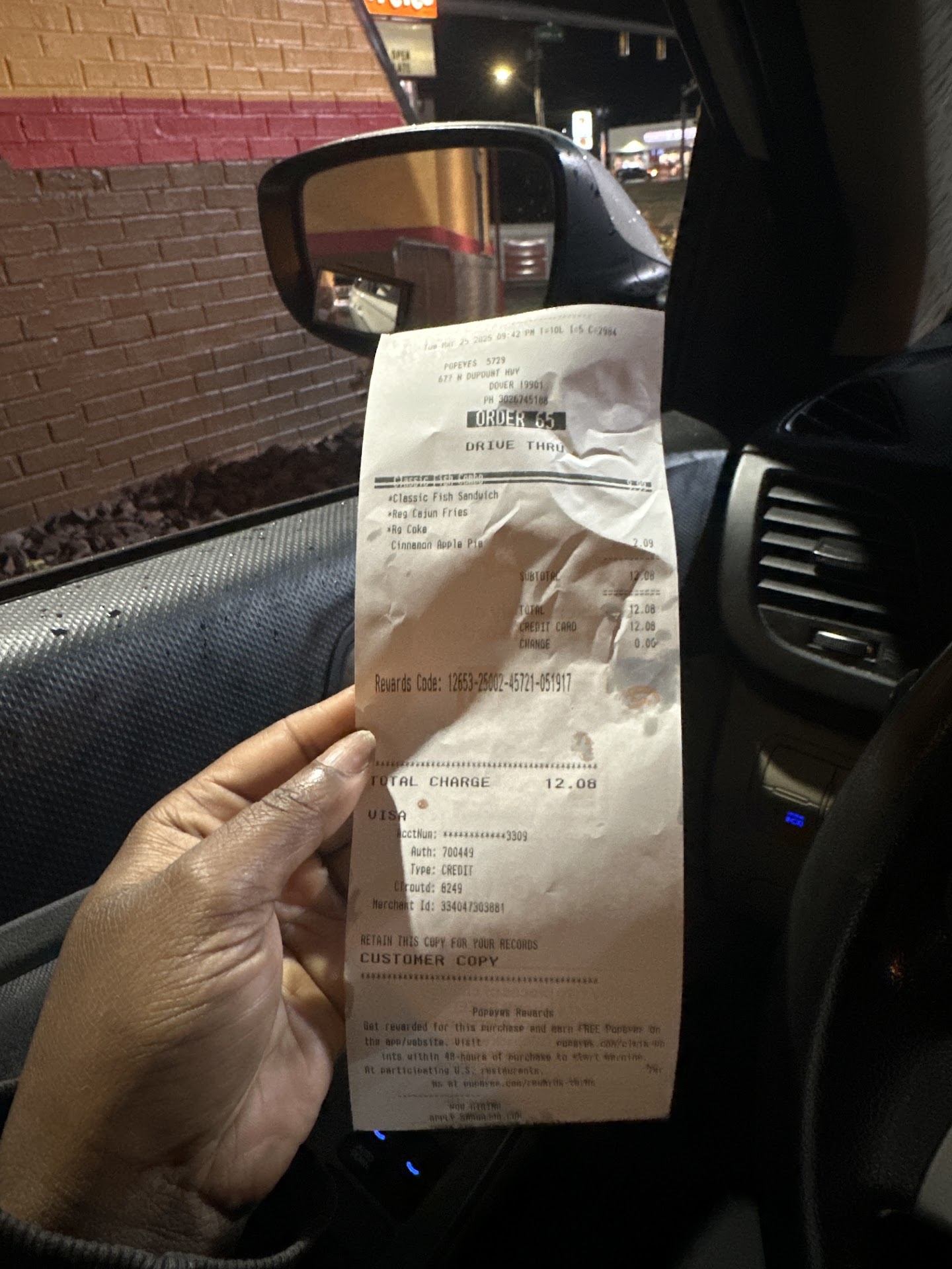 If I could give a 0 star, I would. Firstly, I would like to say tht I’ve been fasting all day long and decided to come to Popeyes to break my fast. My order was taken and I was told to move up and wait for my food. After 15mins of waiting for my food. My food was brought out cold and stale. I went back to ask if they could give me a refund or give me hot food and the woman who was heavy set, curly hair, brown skin, and a Jamaican accent went back and forth with me to ask me what I wanted her to do about my order because the store was about to close. I explained to her that I wanted my food fresh and hot how it should’ve been to begin with. She says “well were about to close idk what you want me to do” an India guy who stood next to her with a blue shirt on tried diffusing the conversation between us both and I explained to him that I wanted a refund. He said no it’s fine I’ll remake your food, Just move up, and wait it’ll be right out. I gave them another chance being as though this man was very pleasant about helping me. Or atleast I thought... As I waited another 15mins, I hear loud footsteps creaking from the Popeyes store. I turn around to see the heavy set woman who argued me down about my food being cold bringing me my food out. (3rd red flag) after she gave me my food, of course I examined it. When she brought my food out the sandwich was so hard I couldn’t even bite through it. They put no sauce on my sandwich in which I asked for spicy sauce. The Fries were disgusting. Overall this entire meal/ interaction was a complete joke. I wouldn’t feed my dog this food. I would’ve been relieved if Ashton Kutcher his self would’ve came from out the bushes and told me he was pranking me. An absolute joke. & I will be furthering my complaint higher up if this situation isn’t resolved and I don’t get my money back. Don’t order from this location. Very tasteless and disappointing to what Popeyes...