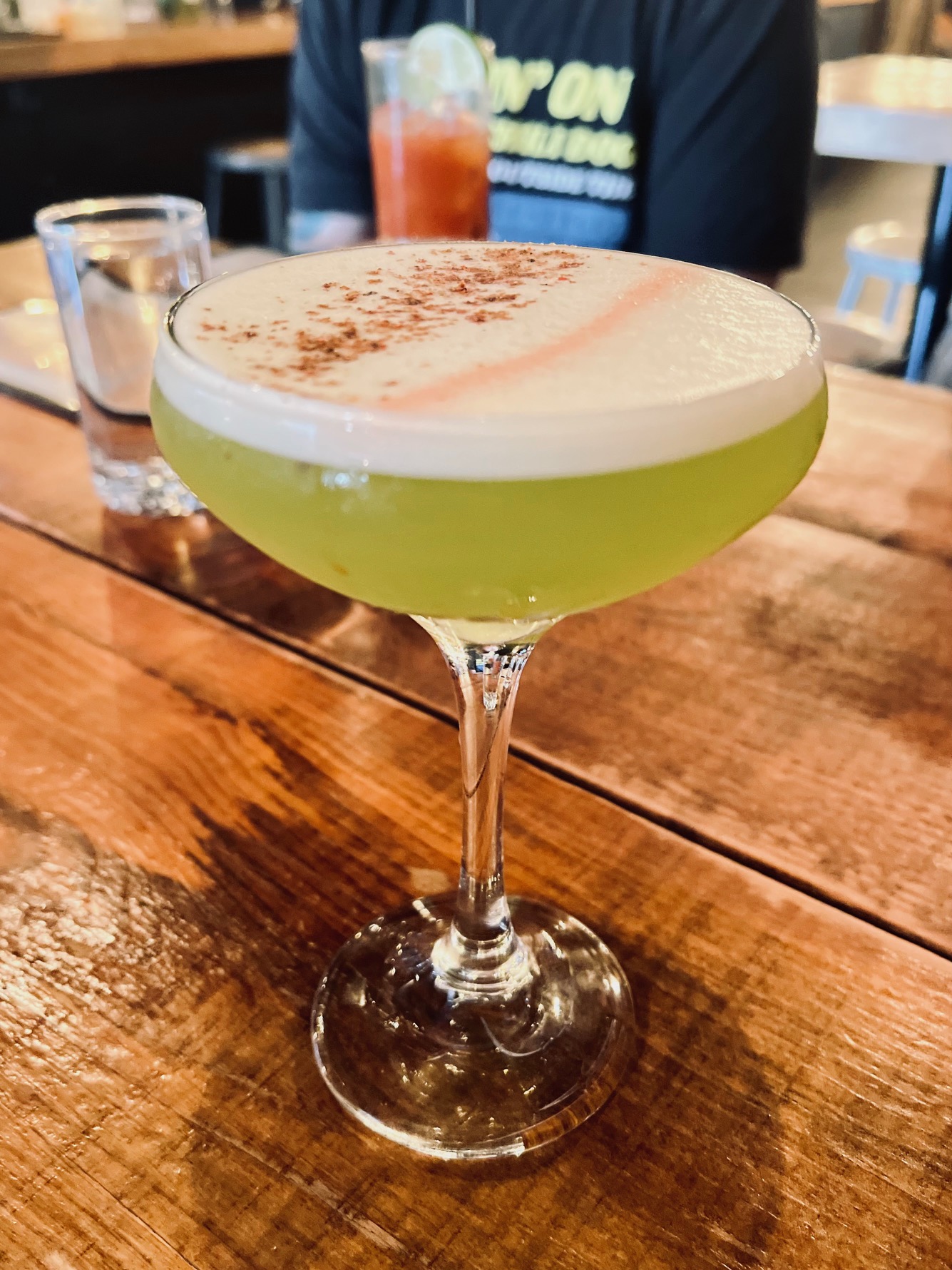 We had been here for their brunch, but hadn't been for dinner. Man am I'm glad we went for dinner. I love their atmosphere. From the really long bar to the shiplap boards on the walls. It's just a really nice atmosphere. My wife ordered a Whiskey Sour and I ordered the Smoked Manhattan. Both cocktails were sheer perfection. We had the deviled eggs and cast iron olives for appetizers. Both were excellent, although it's tough getting through all the olives in the mini cast iron pan due to the saltiness(we took the balance in a to-go container). Our waitress was outstanding. She had an engaging personality, her service was fantastic, and her advice on my wine for dinner was spot on. For dinner, my wife ordered the skirt steak and I got the prime sirloin. Both dishes were cooked perfectly, although my bordelais sauce was a bit too salty. The flavor of the sauce was delicious however. For dessert, my wife ordered the Chocolate Torte with Strawberries and Fresh Whipped Cream. 😝 Wow, was that a great way to top off dinner. Overall, it was an outstanding night out and we WILL be back. The picture I am posting is a bit late in the process. When dinner came, it looked so good that I remembered taking the picture too...