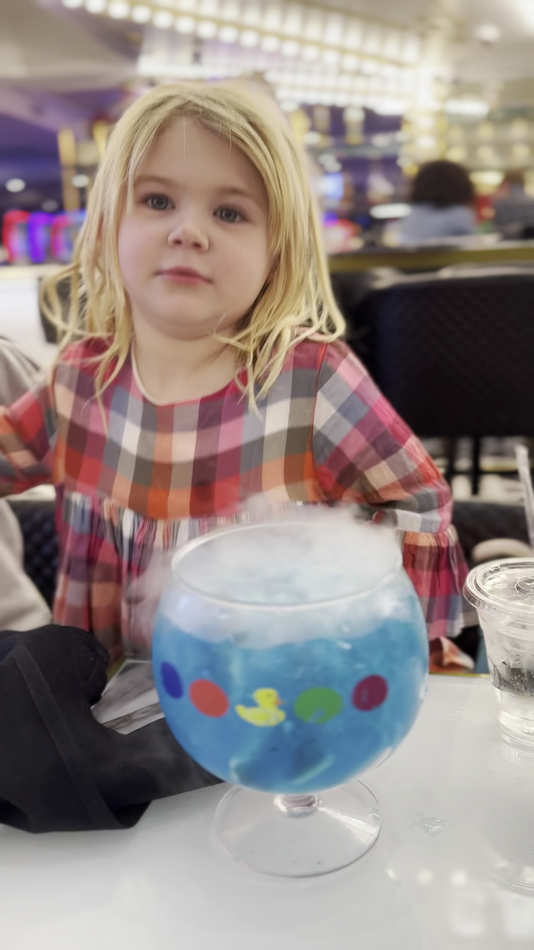 Read moreVISITED ON NEW YEARS DAY, JANUARY 1, 2024 As a 5th birthday gift to our niece, my husband thought of taking her to this restaurant. HUGE MISTAKE! In hindsight, bringing her on a holiday was not a good idea especially new years day when it was evident whomever was to work didn't work bc maybe partied too hard the night before? From what we observed there was the hostess who had a sour, mean look on her face. Never greeted or welcomed any of the patrons that she seated. And the Asian waitress along with the cooking staff and the elder gentlemen who ran the food out once it was ready. Upon being seated, we took in the atmosphere. Although the restaurant is supposed to be 'trendy & hip' according to the multiple tv's, this place seemed depressing. Maybe bc it resides within a casino full of geriatrics spending or throwing all their life long earnings into the slot machines? Aside from our niece, there was one other child. And all he did was cry loudly most of the time. We actually got compliments for how well our niece was behaving. This was definitely not like the SF my husband & daughter visited at the Mall of America in Minnesota, where it was full of families. The decor was cool! It was bright and tastefully sophisticated for what it's for. Now for the service and food. We waited quite a bit to have our orders taken. Considering there was 1 waitress working at the moment and tables gradually filling up, we gave her our order right away. Fortunately, we didn't wait too long for our food but the two specialty beverages we ordered didn't come until almost a 1/2 hour after receiving our food! My husband never got his soda! Eventually, more staff gradually trickled in but by then we were deeply disappointed by the service. The food was OK, but nothing to brag about: The Big Cheesy, Chicken tenders and fries, grilled cheese and fries. Beverages: the Ocean Blue Goblet and the Candy Shop Goblet. It was pretty cool watching the actual beverage being poured into the Goblet. It's like a science experiment! OVERALL: NOT WORTH THE PRICE TAG! Horrible service. Or simply try another SF where you don't feel depressed on when you'll meet your maker! Don't bring your...