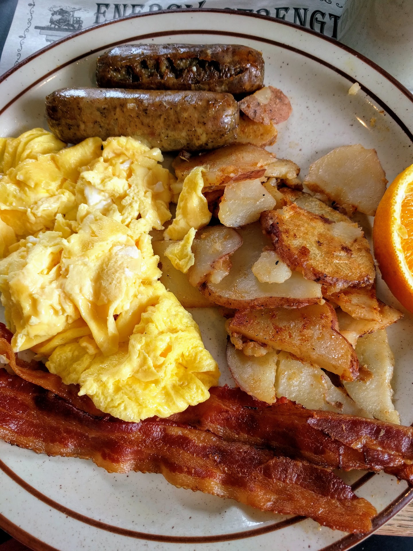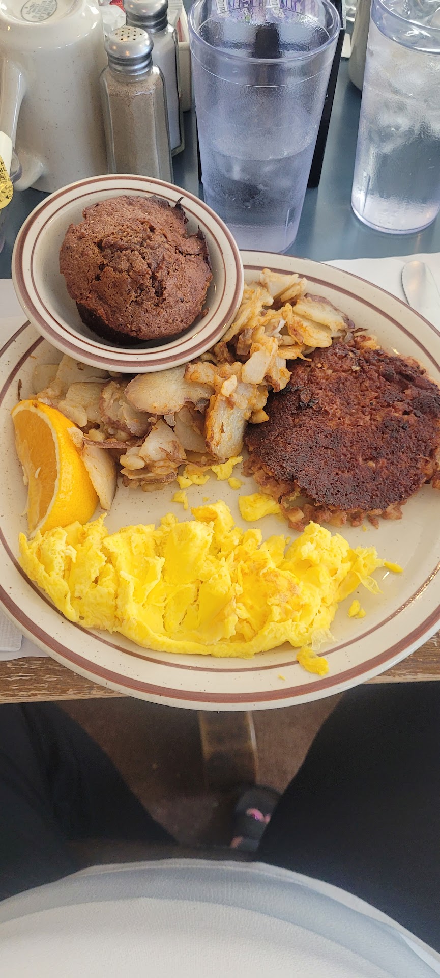 I wish I could have given four and a half stars since I won't give five unless there was something real special about the place such as had I met my future wife there or even if the meal was so good that it seemed worth it to go out of my way and stop by on a more regular basis while driving south to visit my former wife's family who are located in the Harrington area. Back in March 2016 when I did stop in it was because I was in the area for work related reasons and wanted to try a local place that I could use as a staple when in the area and needing a good meal. I may have found just the place as one of the things I really liked about it was that the decor of the restaurant was very much what my wife had enjoyed when we went out so I am sure she would have liked it here. Another excellent characteristic was that EVERYONE seemed very friendly and eager to help as I was able to take notice of other tables around me and how their needs were met. Although I do not remember the name of the woman who had waited on my co-worker and me I would probably recognize her smile if I ever do come back and she is still there. Another really nice thing was of course the views over the lake as it reminded me of the place we had eaten for our eighth anniversary that is overlooking the Egg Harbor River. For my meal I ordered THE CONSTITUTIONAL which was 2 Eggs, 2 Pancakes or French Toast, 2 Sausage Links, 2 Bacon Strips, & Home Fries and it was a good as it sounds. The eggs were fresh the meat was of good flavor, the french toast was pretty much the way I make it at home and the home fries were good as well. This place is definitely a good choice when you are in the area or just passing through. If I lived within an hour I would probably come by while out riding my motorcycle and who knows maybe I will take the two hour ride some day just...