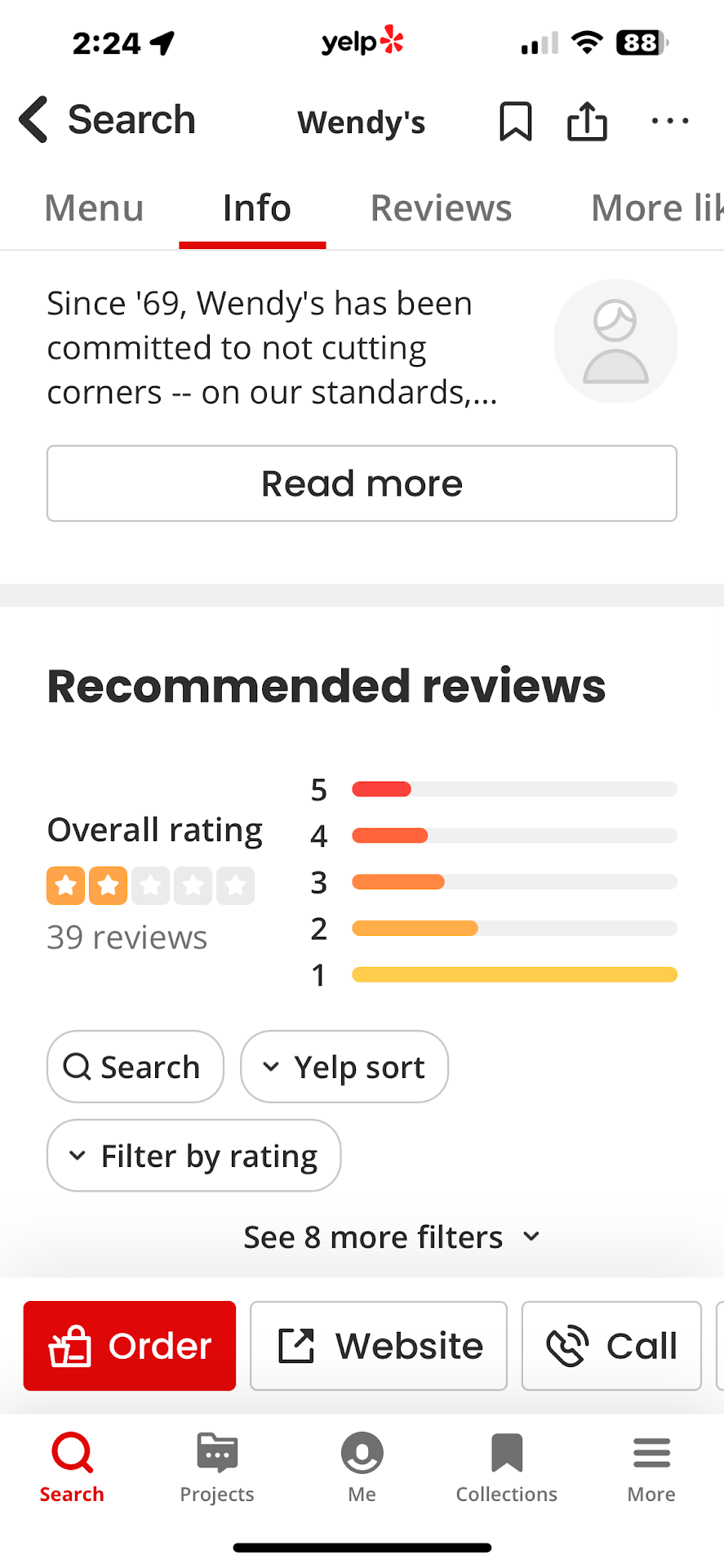 Read moreAbsolutely the most horrible service!! I've worked at fast food restaurants for over 20 years. It's not a difficult job!!! I waited over 10 minutes before I was even acknowledged. There were a lot of employees up front and not one employee said a word to me. They were all concerned about pick up amd drive thru orders. The management is horrible. They should of had a designated employee working the front register only. A fry person(which they had) a sandwich maker( which they had) and another employee bagging food(management) The front register employee obviously had issues working the front register. When she did take my order she put her arms and hands on top of the register and look at me and said I quote " is this for here or to go?" Not a hello, sorry for the wait, or Hi how can help you today? It was extrememly rude. As I was waiting for someone to take my order a big group of people came in. It still took that employee at least 5 minutes to take my order. I really don't know how long I would of waited if it weren't for the big group coming in the door. That manager(she was useless) that was on the floor should of told that employee to take orders. Because she obviously didn't want to. People that work with the public need to be more compassionate. I will never go back Wendy's! EVER!!! I was picking up 2 Jr cheeseburgers, 1, 4 pc nugget and 3 small fries and 3 small chocolate frosties. They were for my grandgirls or I...