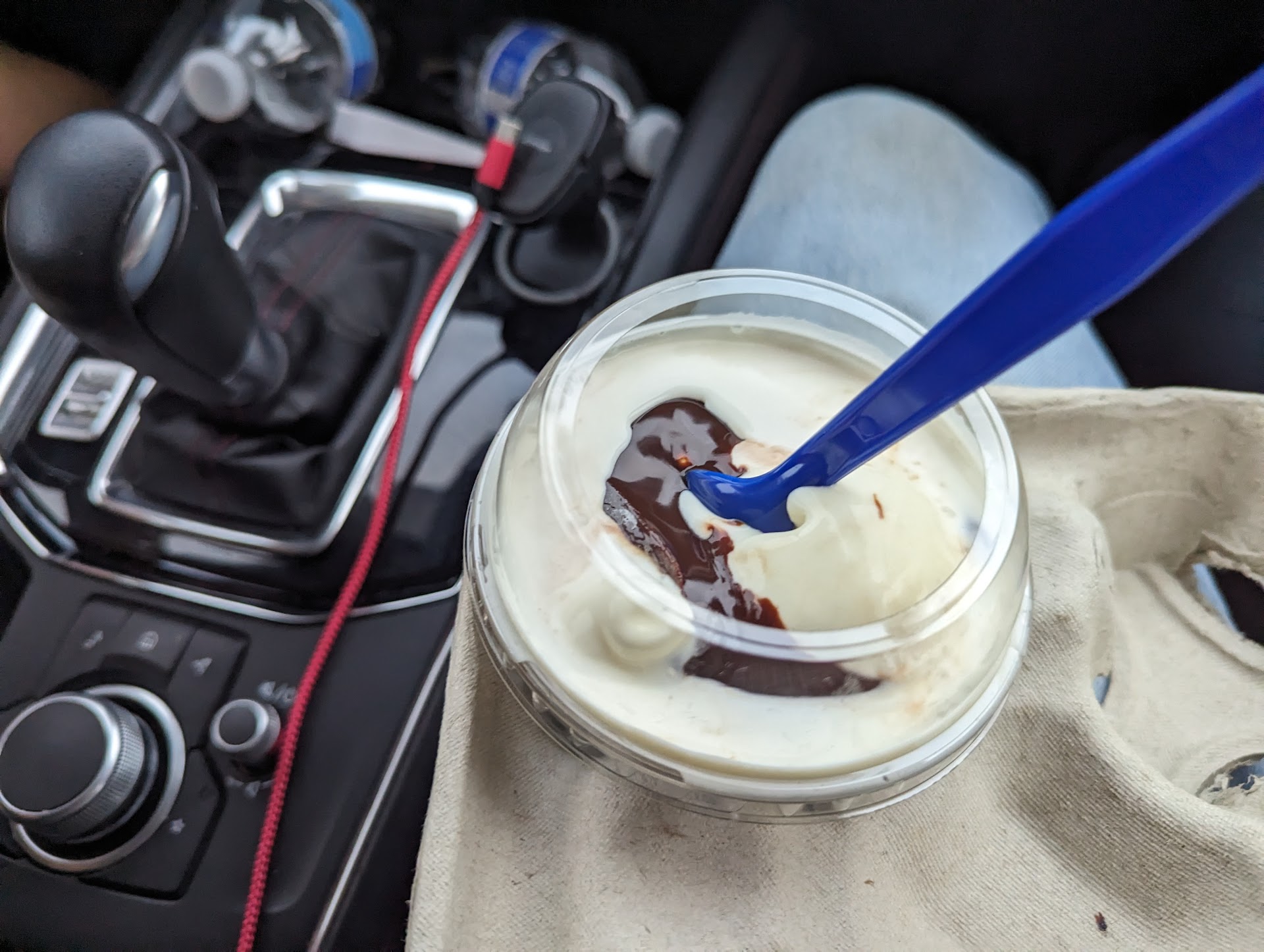 Read more**8/2/23 7pm-ish we ordered 2 ice creams at drive thru. A sticky note # placed on our side mirror and Todd to pull over to right side of lanes to wait. It was very busy and we watched car after car receive their food or ice cream. At one point I counted 9 cars waiting in spots to receive food/ice cream! Slowly they all left and we were there only car remaining. I finally backed up parked and knocked on the drive thru window. Emotionless worker asked in back if anyone had three order and a guy said yeah he was working on it.???? It was brought out a few minutes later and one was absolutely soupy. Very disappointed and mainly cuz I don't think I even got an "I'm sorry for the mix-up or wait"