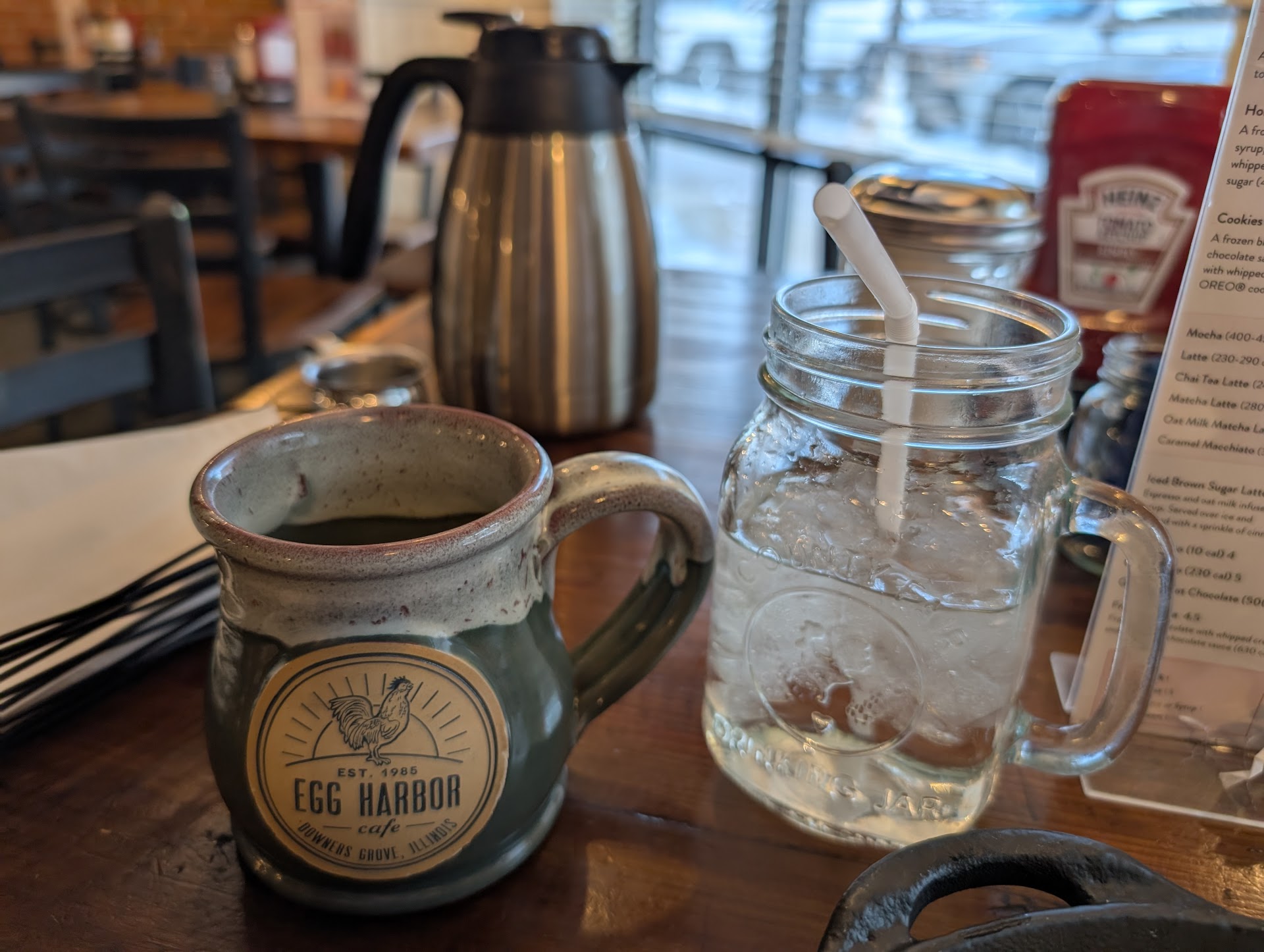 Ordered one of the skillets, which was pretty good. The service, with the waitress started out good. But, then we noticed that water hadnât been brought out to us, so I asked our waitress that water be brought out to us. We were seated by the kitchen, so I could see her go get a carafe of water, without ice. However, instead of bringing the water to our table, she decided to stop and talk (lingering and laughing) with a another female employee(whom later stated she was the manager when I asked for the manager - but didnât give her name, nor did she have a name tag). After waiting for a few minutes for her, watching her laugh it up with the manager, I asked one of the male servers if he could bring us some water. He went to get a carafe of water with ice. As he brought the water toward table she then took notice of him bringing the water out and started to approach, but stopped and turned around as she realized that he was in fact bringing the carafe of water to our table, then she doubled back to hand him the glass cups to give to us. One of the glass cups appeared not clean (clouded), so I requested of our waitress to bring another cleaner glass. She brought one out even worse, and she had an attitude, as if I was bothering her. I politely asked her again, but this time pointing out the problem, showing her the one clear clean glass we had compared to the other cloudy (dare I say dirty) glass. She then took both glasses (I thought to compare the clear glass to bring us another clear glass, but instead, she took the glasses, showing us that she was bothered that we even requested such a thing) right to the kitchen area, where she and that female coworker (she was talking and laughing with earlier) came out laughing again and holding the glasses up to the light and then sending the female over to us with 2 cloudy (dirty looking) glasses, set them on our table and walked away. I then requested to speak to a manager. A young lady goes toward the kitchen area, and out comes the female (waitress/manager) whom our waitress was laughing and talking with during the whole time. When I explained the situation to her, she didnât offer any apologies for the behavior of the waitress or herself, and just stated that the dish washer makes the glasses cloudy that way, but that we, as in the restaurant could get clearer glasses. It was clear to me that she didnât care what I had an issue with, she was obviously covering for the rude and bad attitude of the waitress. Needless to say, I did not leave a tip for our waitress. And, I will not recommend this restaurant to any of my friends, not because of the food, but because of the service. Itâs really ashame that some people who are in the business of serving the public donât understand that if you donât try to at least give the effort of actually serving your patrons, the business, in this case, EGG Harbor on Mochel Dr. in Downers Grove, will loose business. When I looked around, all the other tables with people seated, had a carafe of water with ice brought out to them soon after being seated. I donât remember our waitressâ name, however my receipt said our server was âItziaâ, if thatâs her name, it truly is ashame, her behavior, and the managerâs as well. No, I wonât be giving my business to this...