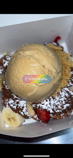 Update: from my original review came back in here last night with my daughter we love this place it’s become our little spot I was disgusted first of all the last time I came they didn’t have the flavor I wanted I was told it sold out same day etc believe it was called the Dubai ok no worries I settled for the Nutella banana strawberry mini dessert was delicious! I come back last night for the Dubai’s and was told it was no longer sold in their store since it didn’t do well…hmmm ok the young girl was very snarky are rude I think maybe it’s because it’s Saturday night and she doesn’t want to be at work but her professionalism was non existing. I ordered instead my usually 12 mini pancakes and strawberries and bananas with Nutella and a scoop of Biscoff ice cream now i noticed it was low so I kindly asked her would it be enough if not I can pick another flavor she says yes she made me the SLOPPIEST nastiest looking Eiffel minis box in history with a mini scoop of ice cream this place is supposed to be art a place people come to take photos esp just being on Chicago’s best how dare you charge me $21 for this bs my daughter ordered the waffle cone with pumpkin ice cream it was sloppy and falling all over the place I’m very turned off what a shame! Your employees need more training I was hoping the other guy would be in there he was the best! The pictures I posted were from how he made them so beautiful all 3 times we came in with him there the other girl was crap was embarrassed to even post it