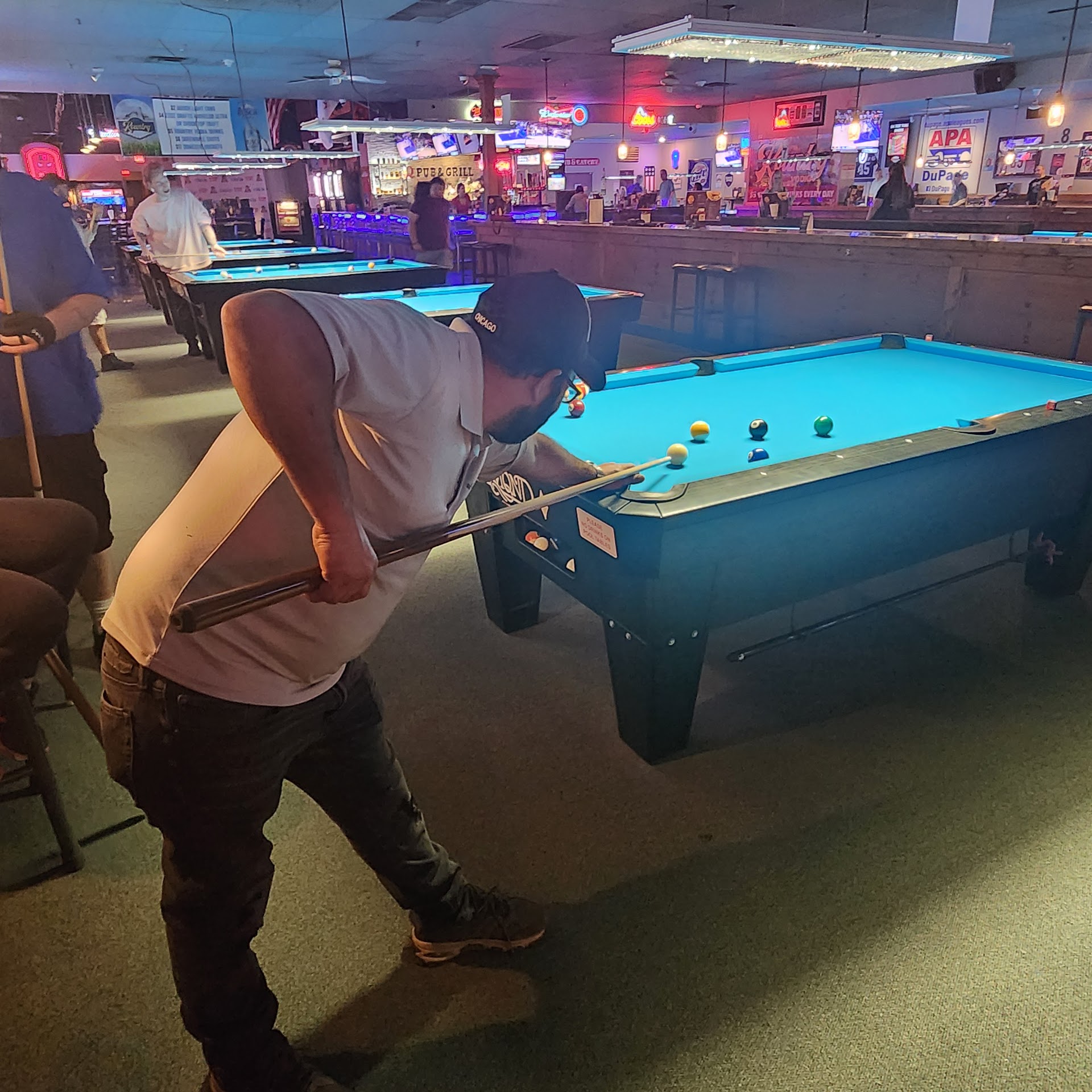 091721 I actually was very surprised! Do not let the condition of the mall deter you from visiting this establishment. The staff is very friendly and very attentive and the customers are very friendly too. You feel welcome ...with average age over 35. This establishment does not follow or enforce the mask mandate. Some employees wore a mask . Yes it is a pool hall with nicely lit pool tables and great prices for a game of pool as well. They do hold competition games here so they do draw a big crowd. They also have bags games, drinking game table set-up, huge Jenga set up and I think something that involves a microphone and screen It is on the dark side with no outside light coming in. It does have a U-shaped bar, limited small pub tables so it's not set up for the dining experience. The burgers are delicious! Love the fries they serve and they have $3 burger Thursdays. A cold beer and a burger is the way to go. They also promote $2 taco Tuesday and they are okay, I would go for the burger! This is a great place for a burger and beer and a place to call your own local...