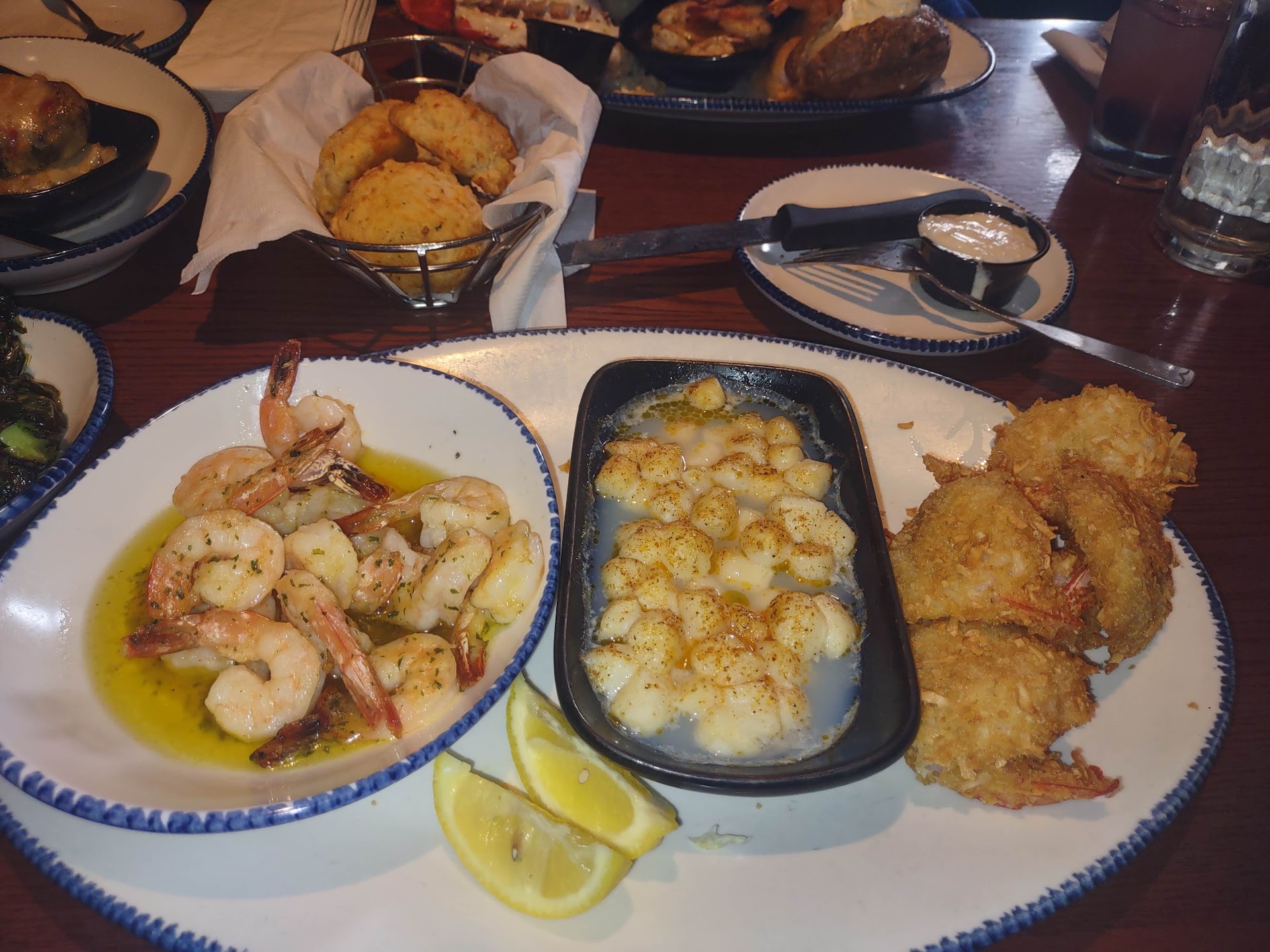 Read moreWife and I went last night for dinner to celebrate our 1 year wedding anniversary. Could've had a better experience. Our waiter (or server) was very kind and friendly, other servers appeared miserable and sounded it too. Wasnt too keen on the little tablet like device they left us with, I feel it just takes away from the overall dining experience. Not big on using the phone during dinner to begin with. Even if we wanted to use the device, there wasnt much to do without paying 1.99 to use it. Food quality and portions were typical of a big chain restaurant, nothing to write home about. Appetizer came out long before our drinks, cant really fault him since he was handling a large party, more or less the fault of the hostess, we should have been sat with someone who wasnt as busy as our server. Was kind of frustrated when the beer I ordered came without a glass and in a bottle. Main course finally came, and the girl who brought it to us was very kind as well. Half way through my meal, after biting into my food, I felt something irregular, I pulled a hair from mouth that had been on my food. My wife and I immediately lost our appetites. I asked a waitress that was passing if she could grab our waiter, which she rudely corrected me with "You mean your SER-VER?" Not sure what the difference is, I thought they were one in the same, regardless maybe say it with a little less altitude next time. Not our fault you hate your job and/or life. Our "SERVER" promptly came and we explained the issue, he was extremely apologetic and said he would grab the manager. About 10 minutes passed and the very casually dressed manager finally gets there, apologised and said she would take my entree off the bill. That was appreciated, but my wife, who had eaten less than half of her food, lost her appetite as well fearing her food may also contain a forgein hair. Can you really blame her? We felt like they could have adjusted the bill to accommodate the little more than half she didnt eat. We didn't feel like waiting another 10 mins for this manager to come back so we just paid the 60 they said we owed and left. We are not going to go back there ever, theres plenty of locally owned seafood places with better quality food...