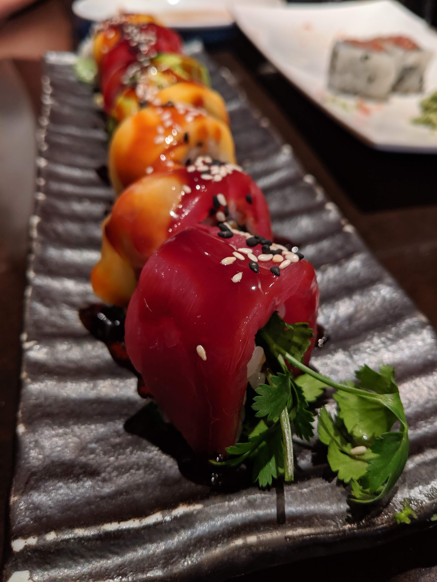 Read moreI called ahead of time to reserve a table for 9, as we were 3 families getting together. Reached there on time, and the restaurant was already filling up. We got to the tables in no time, courteously accompanied by the front waiting staff. Our group ordered the 2011 special, the angry crab roll and uncle jimmy roll. The 2021 roll's colorful tobiko was beautiful to look at, super crunchy on the bite, and with the salmon and tuna that gave multiple layers of flavor in the palette. But the Angry crab roll was one step better- surprisingly. This was probably one of the freshest sushi we ever had, and gave a sense of perfection and completeness to it. The uncle Jimmy roll was the fried one, and was crispy on the outside, rice perfectly cooked, and tuna and salmon perfectly layering in taste. We had green tea to go with the sushi, and our friends had Pad Thai as well as avocado rolls. They seemed pleased with the meal, as we were.