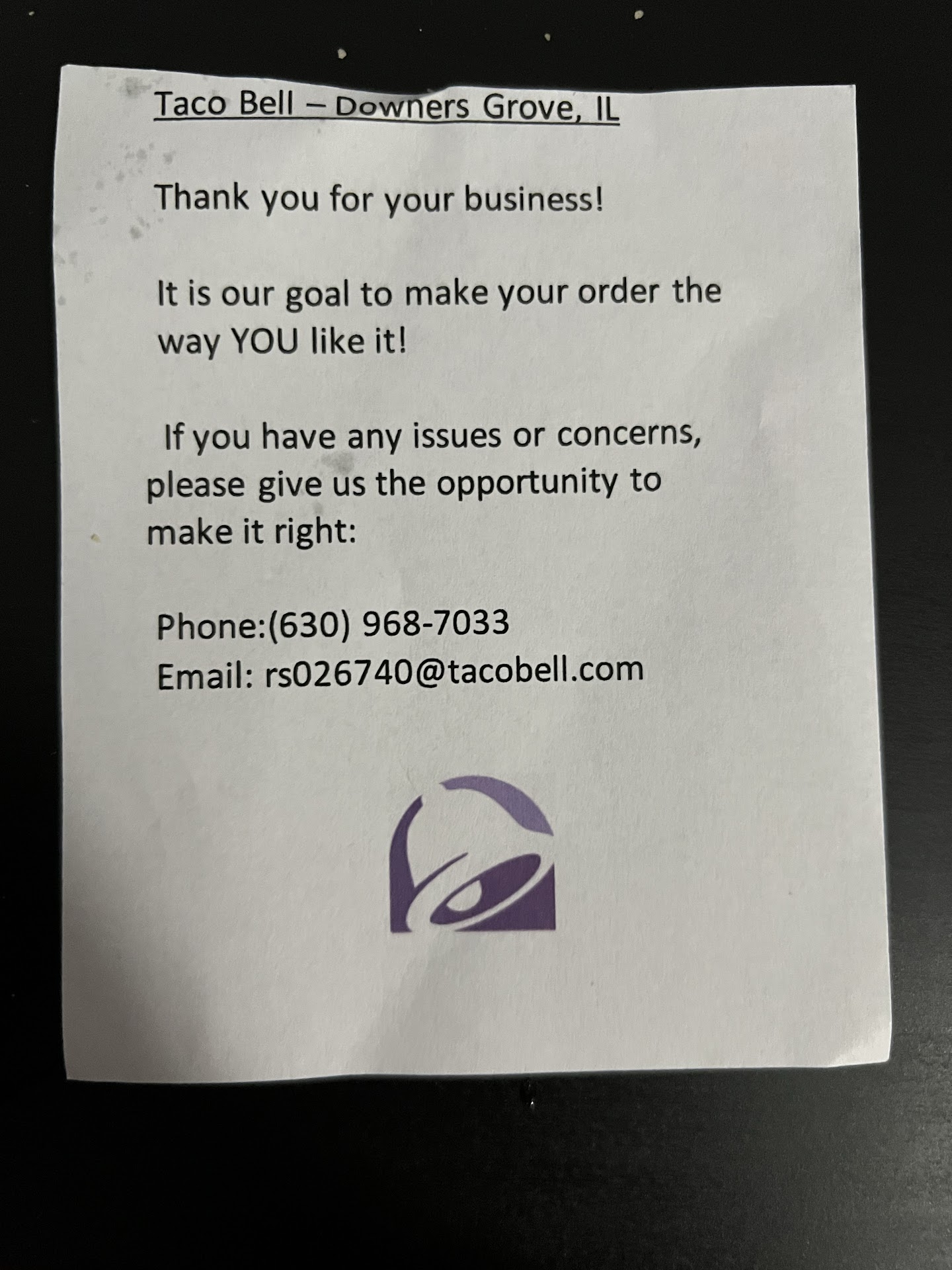 EDIT: Made this review when I just got back from TB.. before opening the bag and finding piece of paper with contact info of what I assume to be store manager or GM... lol you know its bad when they have to print out sheets of paper to try and keep people from reporting them to corporate or writing...