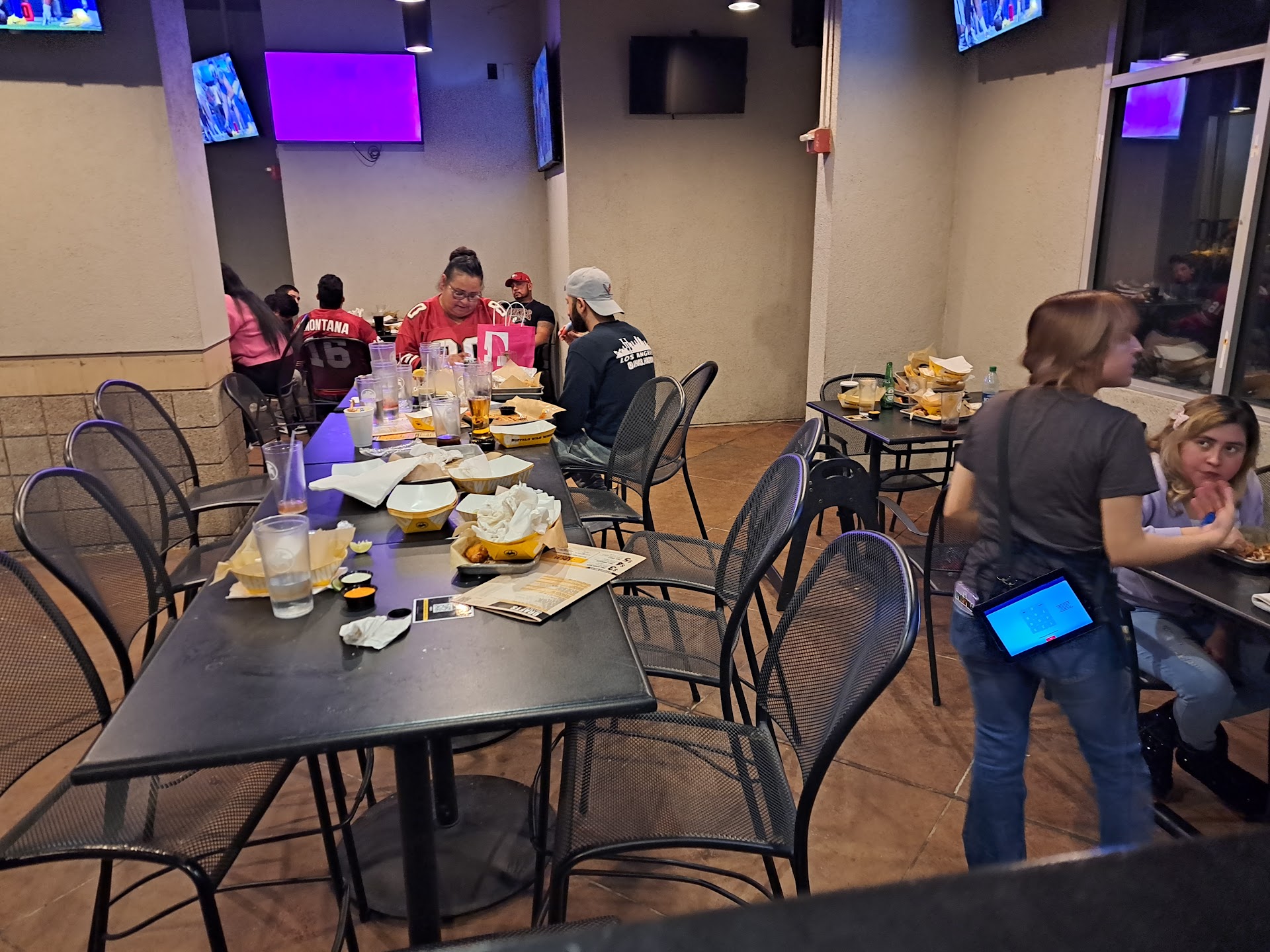 Read moreThis is a restaurant with ok food. They are open late so that's a plus. The prices are typical, a couple beers and two dinners are around $65. My wife and I arrived about 10:50pm on Sunday. The dining room was about 1/3 full. As usual the place was a mess, floor covered with garbage, no cleaned tables. The bartender was very nice. I mention that because after about 25 minutes we hadn't gotten any service from our waiter so I went on and ordered at the bar and paid. I mentioned to him that we hadn't seen our server yet and figured we would get a drink while we waited. It turns out that one of the two guys by the bar chatting was our waiter. Finally our waiter walked by to ask for orders from a couple ladies who had arrived 10 minutes prior to us. I get it. Waiting isn't the easiest job in the world, although the place wasn't busy. I politely waved and he told me to wait. Fine. We enjoyed our drinks and checked the menu online. When he finally arrived he said that we couldn't order any alcohol other than a can of beer since the bar was closed, and that he needed my credit card before he would put the order for food in.