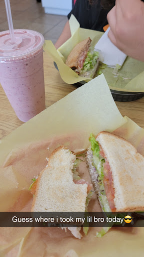 Many times I dream of their sandwhiches🥹 CHICKEN SALAD SANDWHICH say it with me CHICKEN SALAD SANDWHICH. I dont care what bread you get, what you add to it, toasted or not, but let me tell you it is 10/10 each time. My friend gets the regular chicken sandwhich but the salad version (which means its mixed with mayo) is soooo refreshing and delicious. They add lettuce, onion, pickles, etc etc etc, and it is the BEST combination everrr. I would have never thought there would be a sandwhich that I couldnt replicate at home. I always want to ask for the chicken salad recipe but if I made one that good, I wouldnt want to tell anyone the recipe. I also like their strawberry smoothies! But they offer soo many items, it is insane. My best friend and I used to come here for scoops of icecream when we were in highschool, that was 5+years ago, and this spot has a special place in my heart. Only thing scary is the price tag, but its worth it to support a small business. The banana splits...