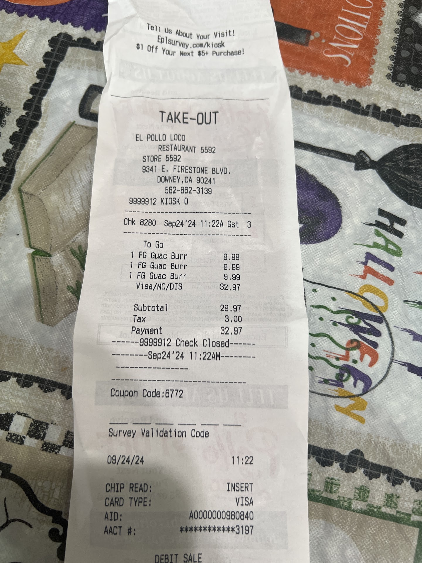 To the owner: in regard to your reply, you must not have read my review because I said I already contacted El Pollo Loco through the website and still have gotten no response. I already got my refund from the bank so no need to deal with your incompetent management and shady...