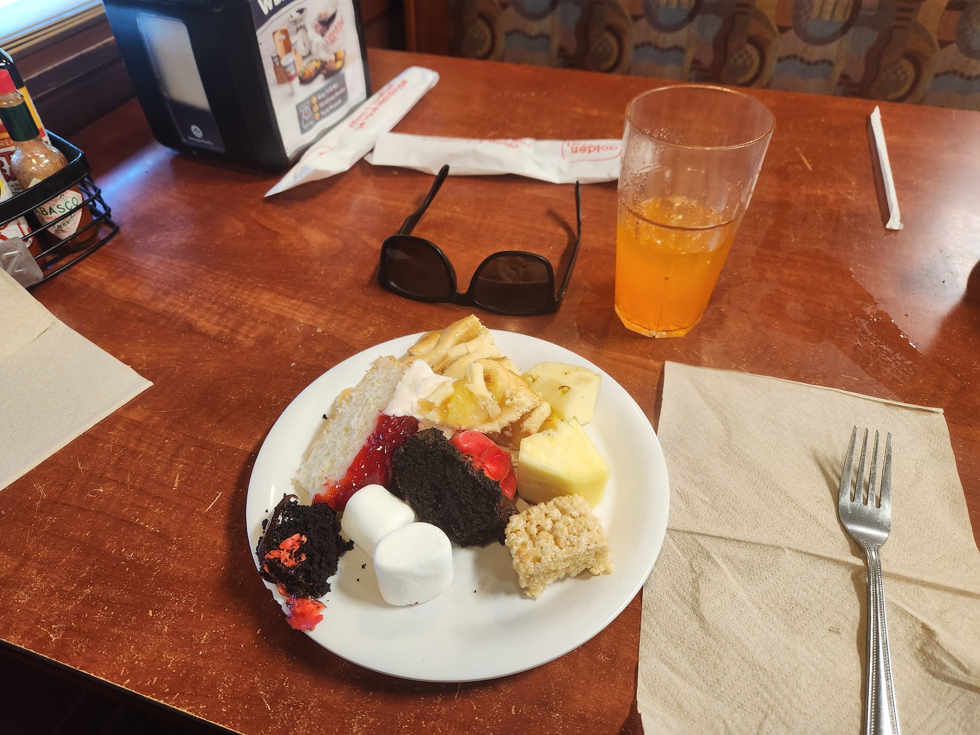 Either this place changed from when I went last, about 3 years ago, or my tastes changed because things don't taste so good to me anymore from what I remembered. Said another way, I can make tastier dishes than almost all of the ones offered at their restaurant. I tried a variety of different items (minus anything Mexican as I already have eaten enough of that cuisine and minus spaghetti for the same reason), including the beef stew, biscuits & gravy, scrambled eggs, bacon, sausage, rice pilaf, mashed potatoes & gravy, meatloaf, and a variety of desserts, including pie and cookies, and I'm saying truthfully that I wouldn't be going back there again unless someone were to treat me, and if that did happen, what I would get again is the ham, some bacon strips, a few potato wedges, and a yeast roll together with what I didn't try this time--the green salads, fruits, baked potato, and soups. I would not go back for any desserts, at all--not even the carrot cake because the slice I ate was quite dry, and also because I can make a better carrot cake than theirs.The banana pudding was too sweet and their orange juice, too sour. I did not try the pizzas because they looked like convenience food taken out out of a package. The meatloaf and stew were OK, but mine is still better tasting. The fried chicken was OK but the coating was a little under-salted. What I do not like about the food I tried is that most of it was too fatty, loaded with calories and salt. The pancakes and French toast weren't worth trying, and the strawberry topping tasted fake. It seems the last time I went there, there were more vegetable dishes, not so this time. Sorry, Golden Corral, something changed--either me or you, but I did not enjoy my visit this time and also noticed that the price went up by $3...