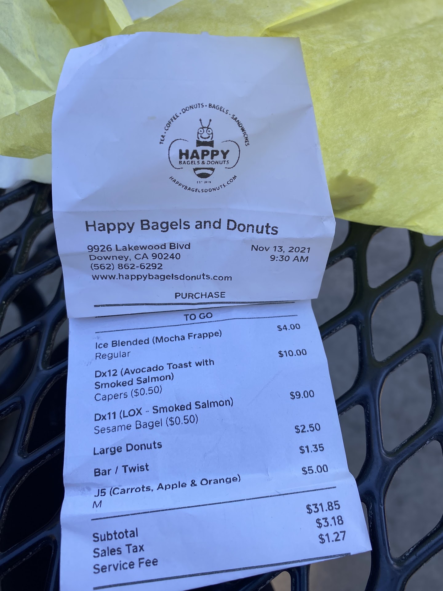 Read moreHappy Bagel and Donuts has BAD SERVICE. I went there a couple times to buy donuts from them. They gave short changes. When I asked for the correct change, the owner, John, gave me a mad dog faces and started to agrue with me. That's not the only time. Their donuts are really really bad. it's hard and doughy maybe it's not cook, no taste, and VERY VERY OIL. They call themselves a bagel shop. HAHAAHAA The Bagels are bad also. Coffee tasted like urine. Do not try their sandwiches and breakfast foods just save your money. It's really bad too. There are COCKROACHES crawling, and flies flying around and landing on donuts during business hours. YAK!!! I don't care what letter grade they get from a health department. They have a lot of roaches and flies. YAKKKIEES!!!! That's bad enough for me. They try to sell too many items. Why don't they make good tasty donuts like Mimi's Donut or the old Jenny Donut. Their donuts are soft and melt in your mouth. I was short change them and they told me don't worry about it. Downey Donut has excellent donuts and services. Dippity Donut has good donuts. they are...