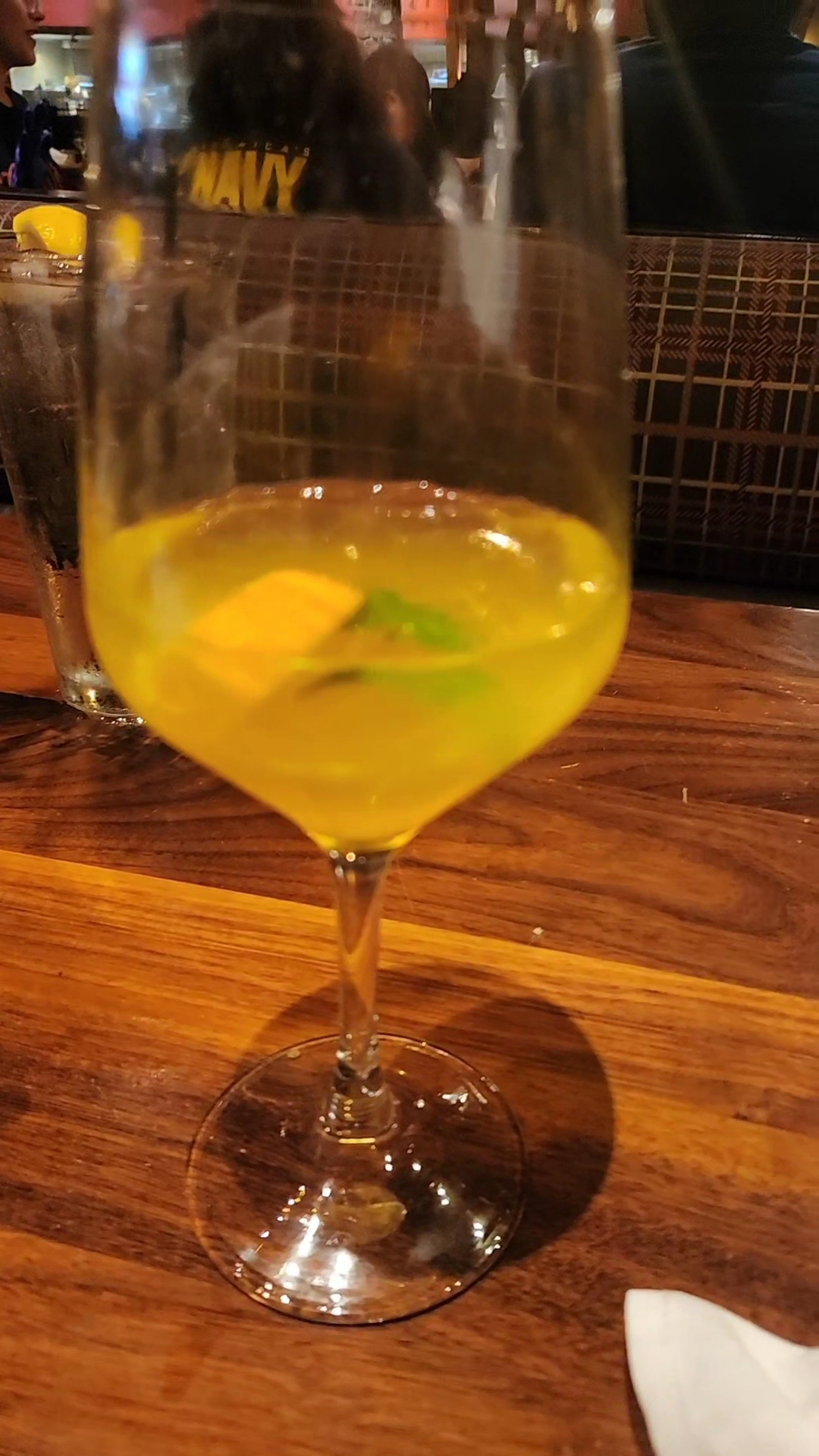 The place is so cute on the outside. You can't miss it. Once in we were greeted straight away and headed to a table. We had a super comfortable booth in the bar area. There is a TV there, but I don't think the sound was on. The bar area is really nice with big bar chairs and I saw a lot of the fancy drinks going by. They also have beer on tap.