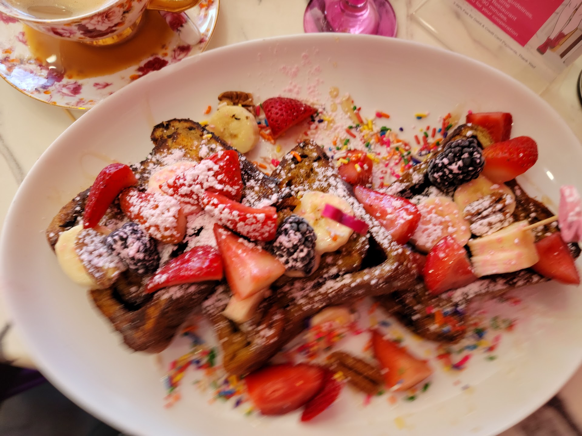 Read moreI took my 7 year old daughter for her b day and we loved it. We had made reservations for 10am for 5. While we waited for the rest of the party to get there we took pictures all.around. The decor all around us was so cute. They served Watermelon with tajin and chamoy with heart toothpicks while we waited to order. I loved the green chilaquiles. My daughter got Frenchtoast which was a big amount for her. It was definitely shareable size lol l. I decided to not share hers with her little brother and just ordered him a Nutella toast topped with fruit and a side of scrambled eggs. 😍😍 he ate all of it 😍 also ordered their coffee which was pretty good considering I don't normally drink coffee because it's not something I like but I could not, not order one considering how cute they look in the tea cups. 😄 we also ordered tea for the little ones and ordered chocolate milk for my 3 year old. It is not on the menu but they told us they can do that for him so he wouldn't feel left out 🥰. We will definitely be coming back for an all moms brunch or dinner 😉 wanted to try all their mom drinks and other stuff on the menu but will do that...
