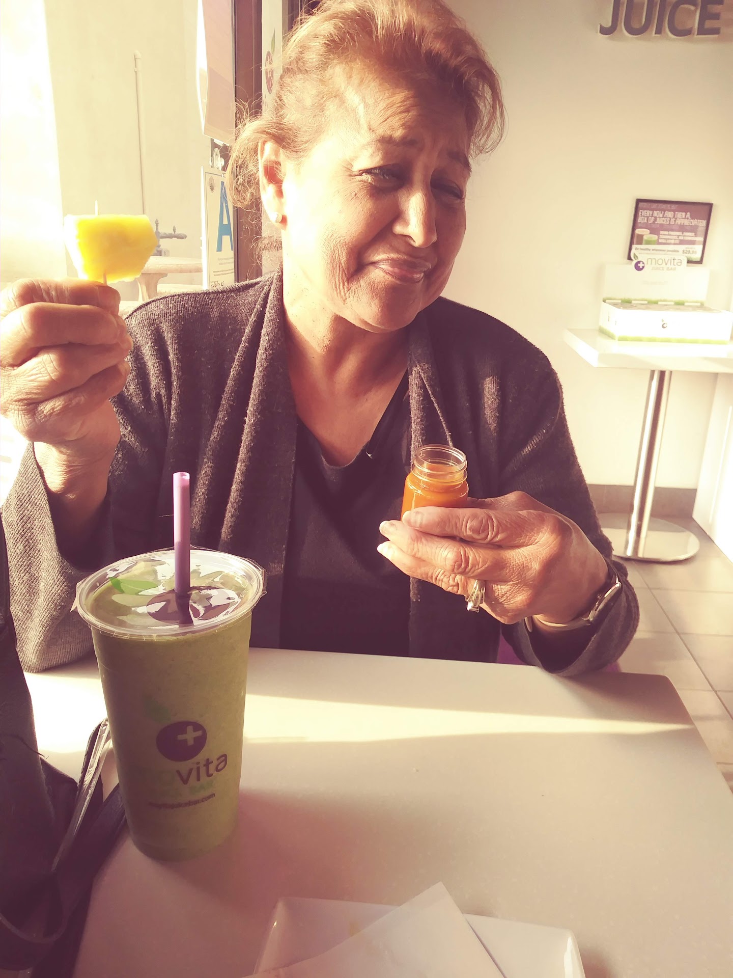 I’m so sad. This place is fresh and has quality foods. You can easily buy healthy snacks for cheap but their warm food is fantastic. The chicken panini was just too good, with its fresh vegetables, avocado, cheese, etc. Each food item comes with a fruit cup and some side peppers, both of which add to the meal. Their value meal is probably the best of all. You can get a fresh juice of your choice and a meal of your choice for a good price, considering the quality of the ingredients. You can bet you will be taking something home because of how much you get. Their ginger shots are fairly spicy (go figure) but I would recommend them as they are really good for you. Happy hour currently 3-6pm M-F so get them often! They also had wheat grass, which I will try next time. Their smoothies were the real deal, though I didn't try one this time (a meal is filling!) but will definitely do...
