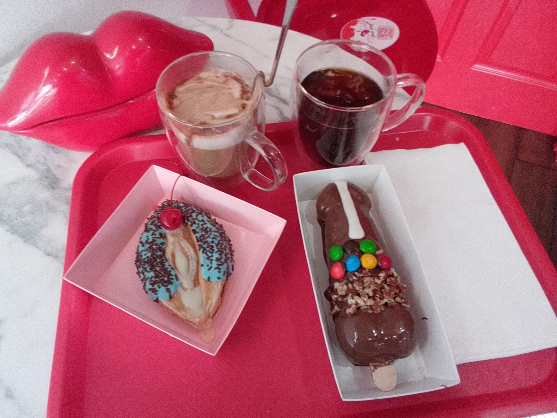 Such a cute lil hidden spot, Came here with my fiance after spotting it a while back we finally tried it out after wanting to come here for a cute date and it was so fun n cool to get a cappuccino and the erotic pasteries it was a blast and the experience was awesome! Would recommend and will be back sometime! Also the customer service was great and the lady behind the scene knew what she was doing when decorating the pasteries 😃💝 one of kind place...