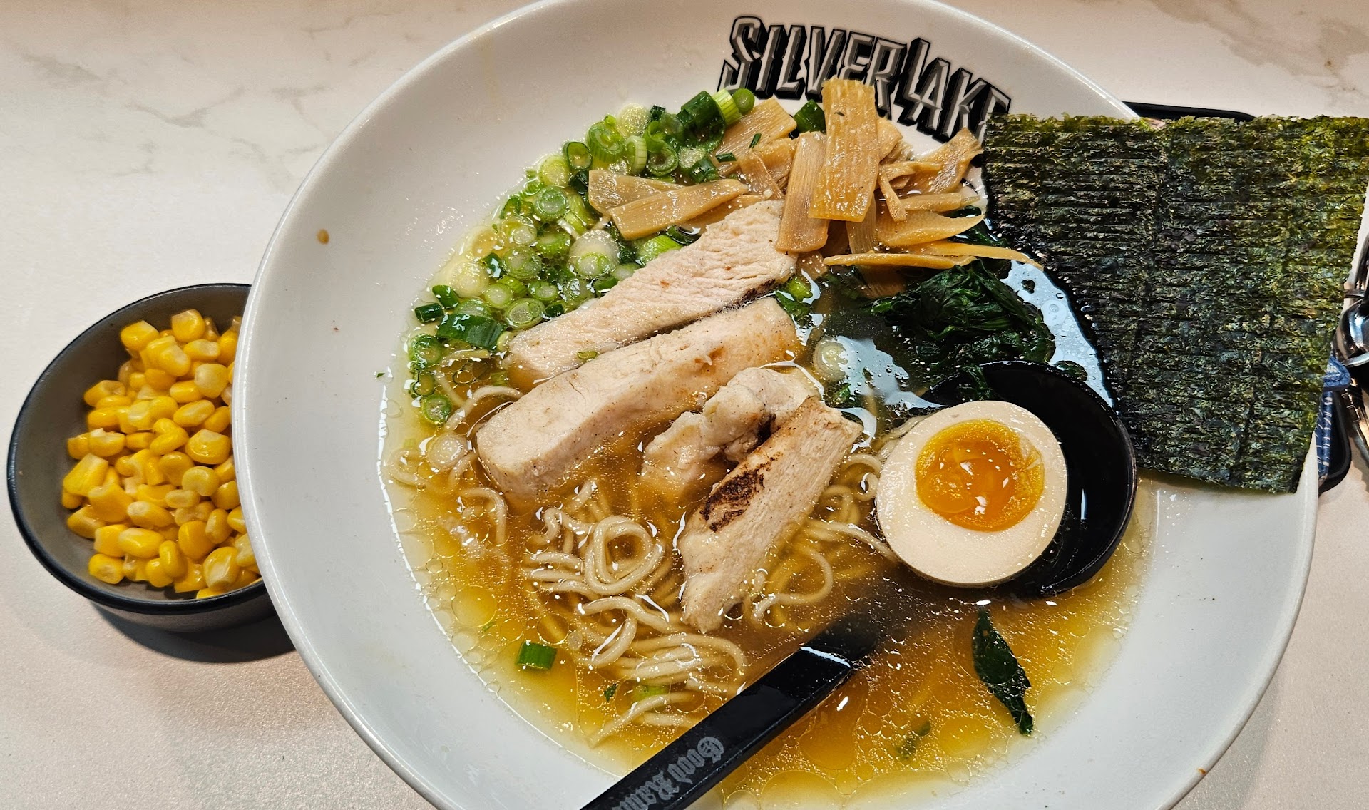 Ramen was pretty good, noodles had a good bouncy texture to it. The chicken threw me off, but that's my fault for getting the chicken. I think it would've tasted better if I had gotten pork.