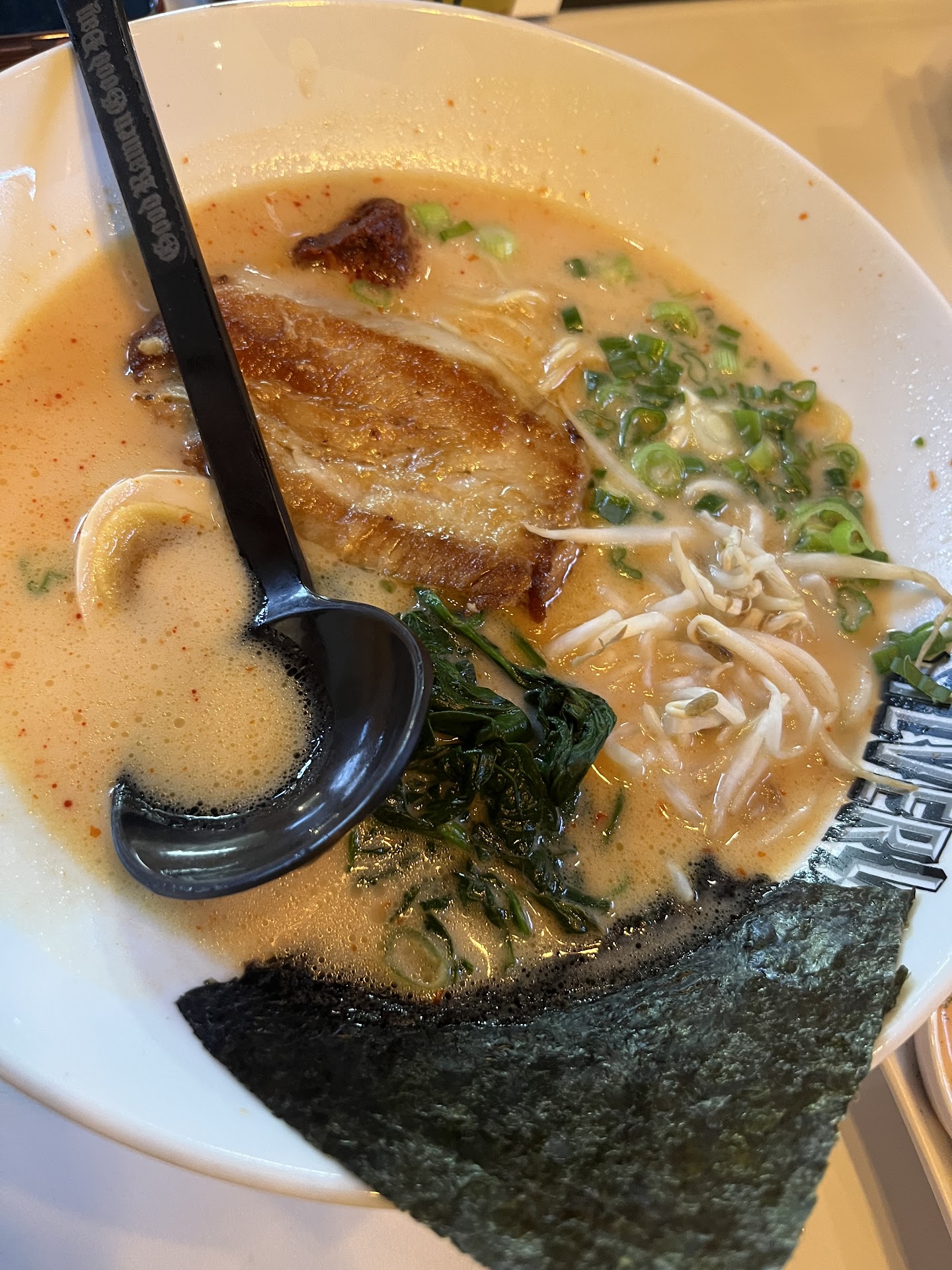 Read moreDelicious ramen 🍜 I loved that you could make the ramen spicy with the chili paste they give you. The ramen had amazing flavor with growth that was not too thick. The pork was thicker than it looks in the ramen. I was happy to see the pork piece was hiding under the broth. The chicken was also crunchy but juicy inside. I ordered the blaze ramen medium spicy with pork, shown in the...