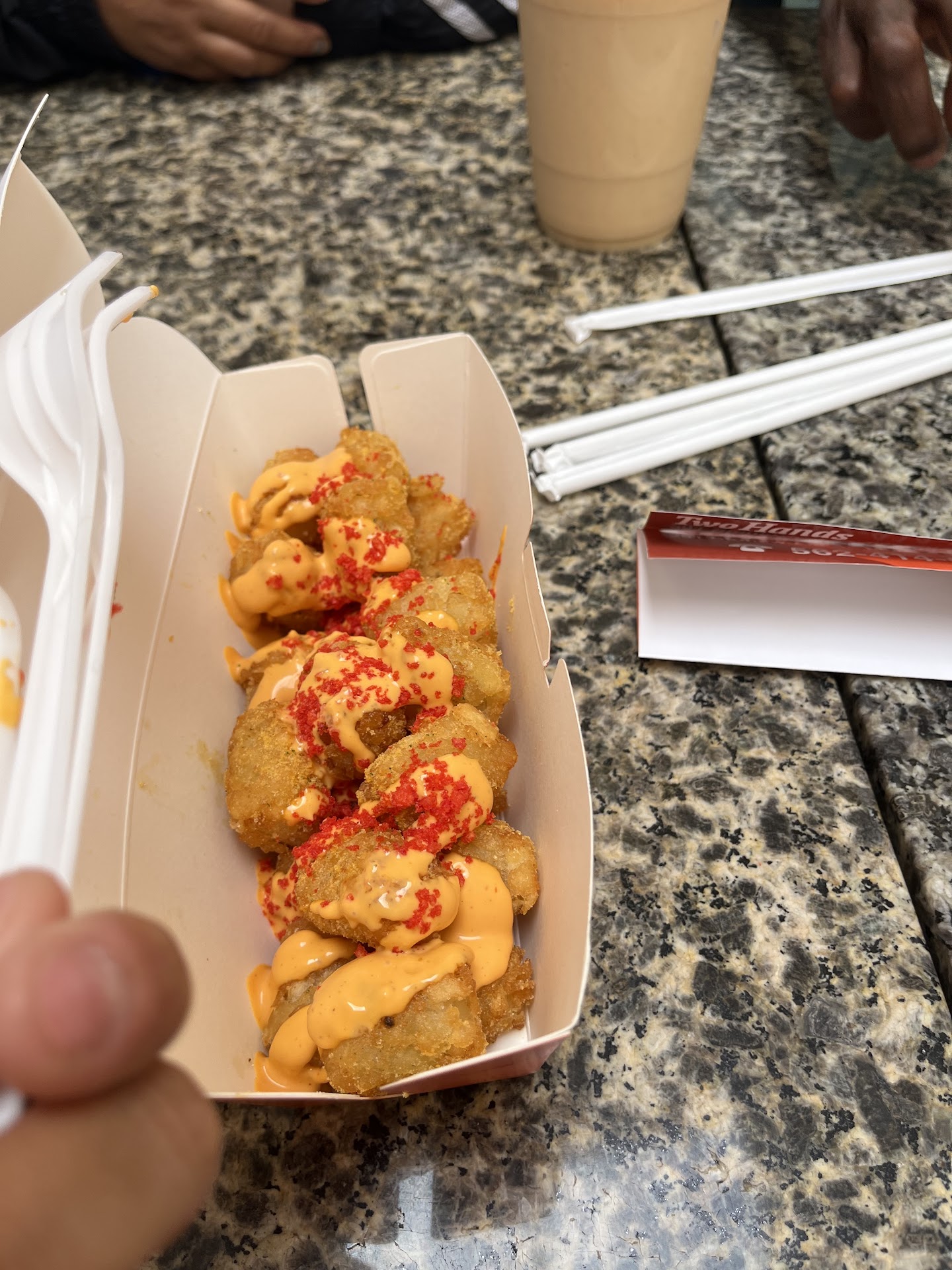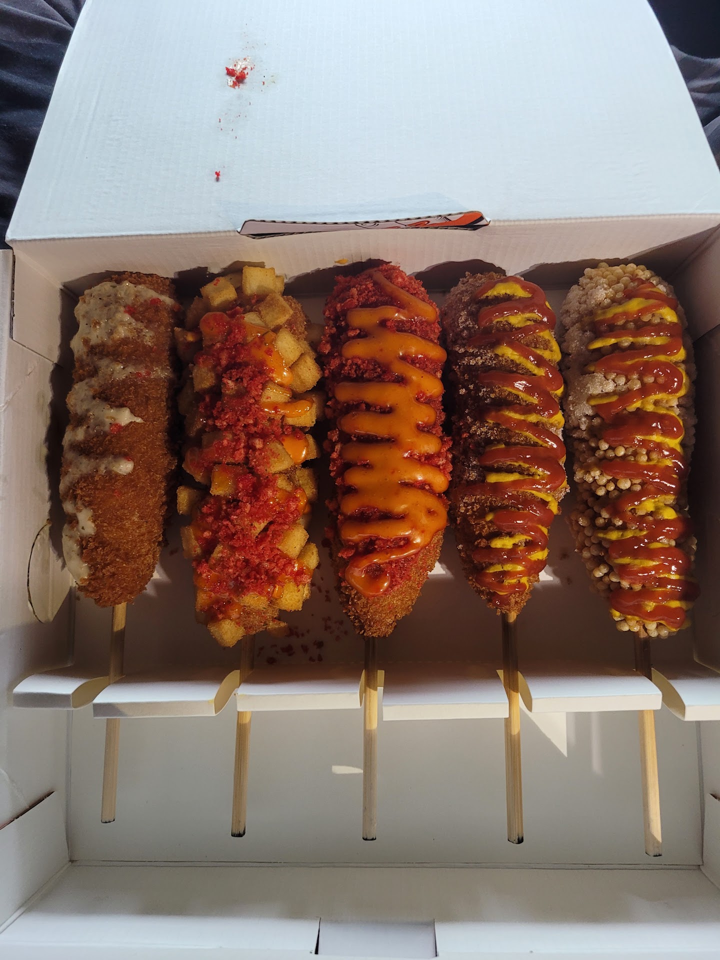 Read moreI ordered a combo meal and the signature set. The set comes with Corndogs chosen for you but you can pick the inside I chose all veggie sausage which was really good. My only flaw really was the service from the cooks. The service from the cashier was good he recommended me the spicy dog half half mozz & sausage and the dirty fries with the pineapple slush. My only real problem was that this lady making my food in front of my face with her hands got fries from my meal and went to the corner to eat it, Like ?? I’m sure they have plenty of fries for themselves but to honestly grab fries in front of the customers and eat them from their order is not right and shouldn’t be happeing. Other than that the food was good sauce was a bit watery but grabbing food from a customers order shouldn’t...