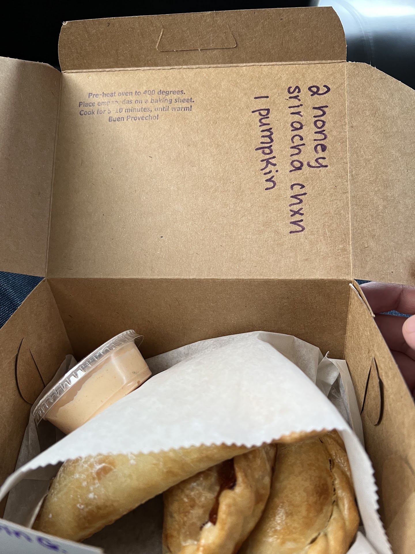 While there was a good variety of empanadas, asking any question about them and the variety of sauces was met with confusion and discontent. I realize its 2022 and I probably should have just ordered online like normal people do, but it was a place we stumbled upon, and I didn't think it would be such a hassle to interact with a human for a change. My only important question was whether there were eggs in any of the empanadas, to which I got a response "probably not, i don't think so". Ok, I guess... I wasn't gonna push it, but not wanting to risk it, we didn't feed any to our son. Fairly certain there was a good amount of egg wash on the empanadas, but I honestly do not know.