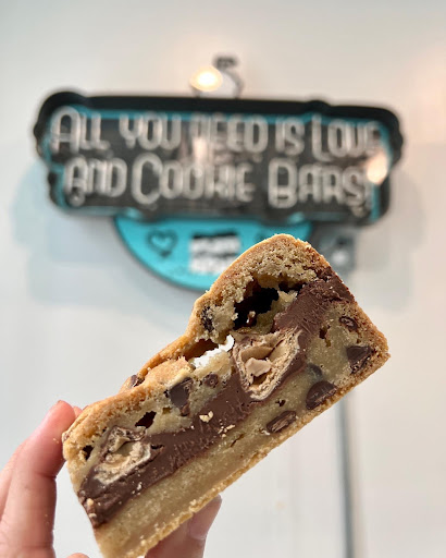 My older boys and I HAD to check this place out! First off, we came in through the back alleyway and there is an adorable patio with a life-size connect four game, and adorable turquoise and white tables and chairs to enjoy your cookie bars outside if you wish. Once we walked inside it was the same adorable vibe of white and turquoise throughout the store. My sons and I had gone in already knowing we were going to get the box of four filled cookie bars for $29. Although I did think the price point was a little steep, it is understandable with all the ingredients that go into the filled bars. The four that we chose were⦠Nutella and kinder bar, brownie and peanut butter, and Milky Way. I am more of a dark chocolate gal myself and although these were very delicious, my favorite out of the four was the brownie peanut butter. I have already put in a recommendation of maybe making some bars with dark chocolate such as coconut and dark chocolate filled, or even an espresso dark chocolate brownie peanut butter filling. I love the idea of having chocolate milk and milk on tap. I think this place is definitely going to go far, especially with the kids from CB West HS and Lenape middle school that walk into town after school. Can't wait to see what's in store for...