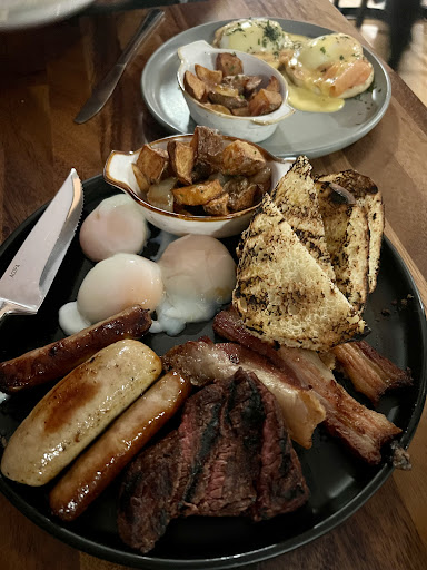 We ordered the carrot hummus, polenta fries, roasted carrots with whipped feta, pork belly, the burger, and bread pudding for dessert. Every single dish was bursting with flavor â not just chefâs kiss, but chefâs make-out.