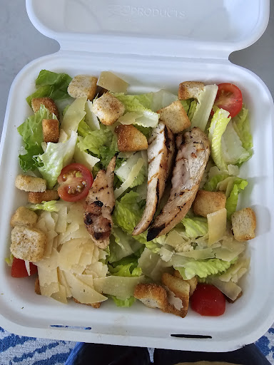 I got a Caeser Salad which was on the smaller side for an entree, but it was still manageable. However, I paid extra to add chicken and I get 3 very dry strips. My wife got a grilled chicken sandwich and the chicken on hers was also tiny and also dry. The size of the chicken really caught us off guard because I had the grilled chicken sandwich from room service the night before and the chicken was literally double the size.