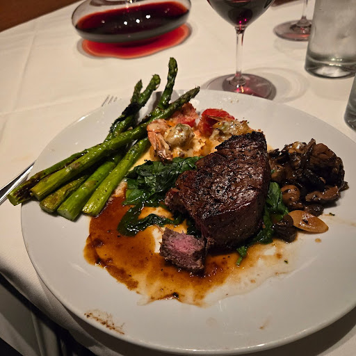 Read moreFirst let me say that i'm rating this 4 stars as to not severely hurt the star rating of this business. Upon entrance we were greeted and made to feel welcomed. The table was set very nicely and the Ambiance was very inviting. there were two waitresses assigned to us, i wish i could tell you their names but unfortunately it felt like they were either overwhelmed with other tables or were trying to avoid us.. I don't know this to be the case but it sure felt that way. (Also i will note that the waitress with the very short haircut at least smiled with us and was a bit more engaging that the other waitress) I ordered an old fashion and it was the absolute best i've ever had. I also ordered a California Jam Jar for my wife which never showed up and had to remind/reorder it again like 25 minutes later. The waitresses throughout the night would check in but it was more of a formality than a true hey are you guys doing ok.... Again i don't know that to be the case but it sure felt that way. there were 9 of us at the table and I want to stress that this is how my wife, my daughter and I felt. I want to believe the sentiment is true for the other folks but i don't want to speak on their behalf. As for the food.. We started with the Calamari for an appetizer, it was cold, soggy and chewy (very disappointed). My wife and I ordered the Tomahawk Tuesday Steak deal with the Wedge salad and the Flemings salad both of which were awesome. we also had the Creamy spinach, Lobster mashed potatoes and asparagus.. All of which were very tasty and i highly recommend. for desert had the Crème Brule (Which was awesome) and the melting Lava cake for desert. (this was also good but had more of a dark chocolate bitterness to it and i don't like dark chocolate) .. I have to say that the steak while very tasty was not melt in your mouth soft and a bit chewy, Also we ordered it medium and it showed up more more on the rare side... see pic below and you judge for yourself. My daughter ordered the BBq Salmon and so did another person at the table.. i have to say portion wise made it look like my daughter ordered a kiddie size compared to the other person..(She's 20 by the way) The same was observed for the Sea bass as two other people at the table ordered and there was a clear difference in the size of the portion. All in all it was not a terrible experience but if this is to be considered "Fine Dining" as a manager/owner reading this post i would be...