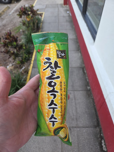 Read moreSmall stand-alone walk up shopfront with parking nearby. I've driven by before. It is located on a busy road near many hotels in the Disney Springs area, so depending on day of the week, time of day and weather, I could definitely see them having a line and not just a person, but the whole family in one party. I heard they had the viral Korean Ice cream and stopped by to check them out. It was a Sunday, late afternoon between 3-5 pm. There were 2 parties infront of me but we were all asking about the same thing, Korean Ice Cream. I tried to overhear what the man was saying about the available flavors to the party in front of me. Unfortunately they were out of mango and strawberry, but did have orange, lemon, grape, chicken and.... corn, yep, 🌽, and I went with weird and got.... corn. For $8.45 I got corn shaped and flavored ice cream it. I was not surprised by the shape, I was surprised there was a hint of chocolate, because yes it was sweet corn ice cream, but the corn flavor was subtle, just a hint of corn. I noticed that in addition to the man taking money at the window there was someone at the freezer grabbing ice cream. There were aleast 6 more people at the ready to make other concoctions and after seeing some of the other pics I think went there for the wrong thing. 😅 I noticed they have Mora (blackberry) jugo (juice) which is, my favorite to get at Latin restaurants. So the next time I'm in the area, I'll have to come by again. Did anyone else see the Hello Kitty frappe in the pics? What...
