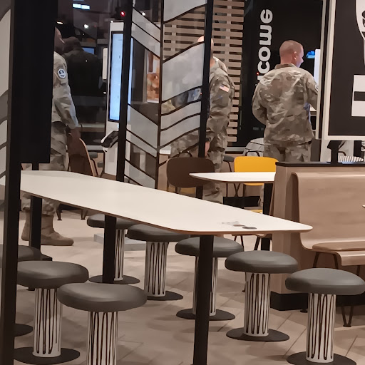 Read moreNo cashiers/order takers; you must use their self-service kiosk which they have several of. You take a number sign to your table and staff will deliver your order to your table; however, this wasn't the case for us. The employee came from around the counter and yelled our number while she stood in the nearly empty lobby. We were seated less than 6 feet away from her and in her line-of-sight. We raised our hand and said, "that's us". She saw us, but made no attempt to deliver the food. I don't mind getting up and getting the food from her despite the kiosk saying it would be delivered to our table, but, I'm feeling a little like an unpaid employee at this point...we placed the order ourselves as well as served ourselves the food despite paying the same amount for the food that a full-service McDonald's charges. Several people in-store and in drive thru returned food due to being cold, old or not made correctly. This included us...at 1:00 in the afternoon the nuggets were cold, chewy and seemed old. I would think this wouldn't be the case given 1:00 p.m. is during the lunch rush. Fries were cold presumably because they were sitting on the tray well before the rest of the food was ready. Double cheeseburger was made correctly (no mustard or pickles), but bun was not warm/dry and cheese was cold/not melted. 4 managers were in the kitchen (button-up shirts with ties) along with 6 employees yet there was a lot of standing around doing nothing and operating with a shuffle-paced, leisurely-stroll walk. I worked at McDonald's and Burger King as a teenager and was always told, "If you got time to lean, you've got time to clean", and that was during slow/dead times, not lunch rush. I will say that the manager I returned my double cheeseburger and fries to (we ended up just eating our stale nuggets because we were told it was going to be 5-10 minutes for fresh ones) was nice and when I told her she could just microwave my burger she insisted on...