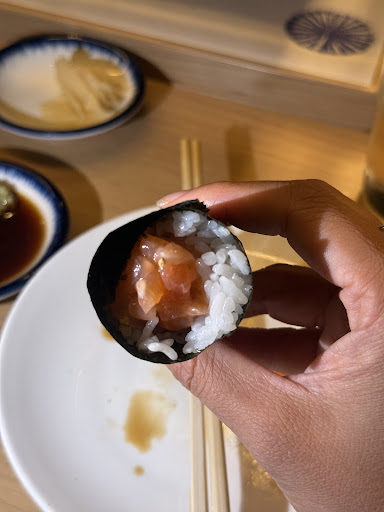 Food: Authentic hands roll. The rice is well seasoned, and the fish is fresh!! You don't need wasabi or soy sauce, as the fish tastes unique. The salmon sashimi is fresh with yuzu dressing. You should try that. Another recommended dish is tuna tartar. It's well seasoned, and the sauce is mind-blowing!! Remember to order it to share âşď¸