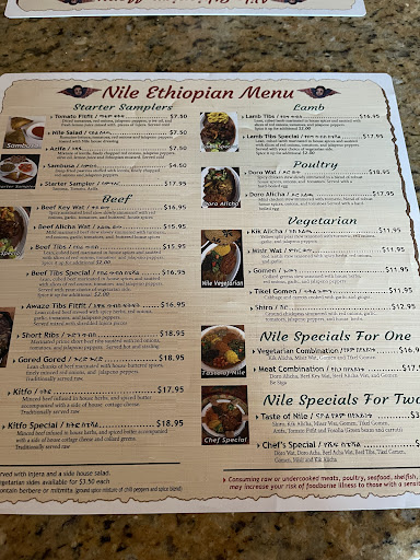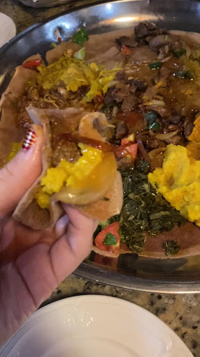 I can’t say enough good things about this place!! It doesn’t look like much from the outside, and the little area it’s in isn’t super nice but it is sooo worth it to go anyways! I had never eaten Ethiopian food so I really wanted to try it, and I couldn’t have even imagined how amazing it would be. Our waiter was the owner (I believe) and what a nice man! He was so happy to tell us more about his culture and the reason the restaurant was decorated how it is, and give us recommendations on what food to try since it was our first time. We ended up getting the Chefs Special and added lamb onto that, and basically that dish is a sample of almost all of the meats, veggies, and sides that they serve there. If you have at least 3 people in your group and don’t know what to get I’d highly recommend it, because then you can try a bunch of different things and share it. That’s what we did and it was just fantastic! Honestly, I can’t remember what half of the foods were called that we got but it was all delicious! You take some of the bread, and grab the different pieces of meat and veggies and go for it, and seriously every combo I tried I loved. The lamb was cooked to perfection, and I was just so impressed. It all just blended together so well and wonderfully. To finish up we got Baklava for dessert, and it’s really some of the best baklava I’ve had. So fresh and made exactly how it should be. I am so blown away by this place, and highly, HIGHLY recommend it! For my covid people they also kept everything super clean and our waiter wore masks, so you should feel pretty safe...