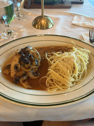 Our server was kind, though a bit awkward. We placed our order within 10 minutes of sitting down, but the food didn’t arrive for 45 minutes to an hour. We tried the Chicken Marsala and the Lasagna. The Chicken Marsala was just okay—much sweeter than expected, almost like teriyaki chicken with mushrooms, rather than the more savory style I prefer. The lasagna presentation in the Le Creuset dish was nice, but the flavor itself wasn’t anything memorable.