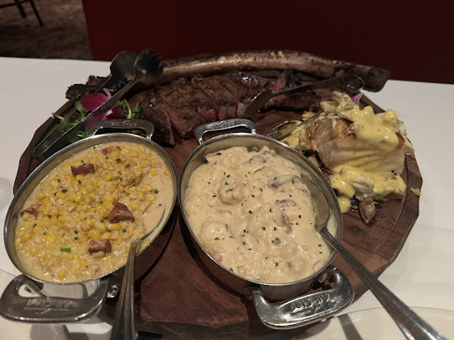 We indulged in the dry-aged porterhouse steak, which was nothing short of extraordinary perfectly cooked and bursting with rich, complex flavor. The tuna tartare was fresh, vibrant, and beautifully presented, and the Nueske's thick-cut bacon was smoky, tender, and utterly addictive. Every side dish we tried was equally impressive, from the creaminess of the au gratin potatoes, to the freshness of the creamed corn with bacon, all crafted with attention to detail.