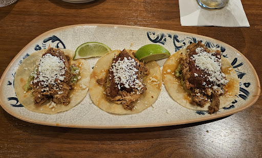 Read moreMy wife and I came here to eat Valentine’s Day dinner, and the restaurant seemed completely unprepared for the night. I am vegetarian and Jordan our waitress was super helpful and walked us through the menu for what I could have to eat. We got a bottle of prosseco that she opened and chilled for us and for dinner we ordered the cheese quesadilla and tamales. After what must have been a mix up, I ended up getting meat instead of the vegetarian option . Jordan noticed immediately and corrected the mistake. No management ever came out to speak with us, but she was beyond apologetic and kind taking care of our dinner and dessert. Even after the mix up we really appreciated the effort that she put forward to save our first valentines together as a married couple she made time to recognize us and our problems even with how busy we could tell the restaurant was. Exceptional service from Jordan saved our visit, but the restaurant could definitely benefit from the presence of management and maybe booking less tables because you could definitely tell the kitchen was struggling...