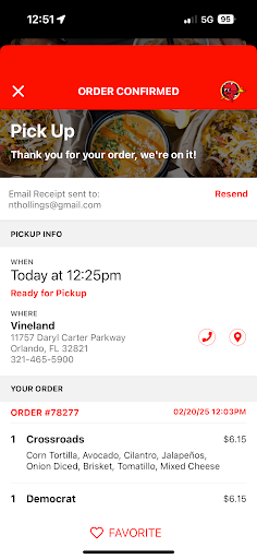 For background hubs is a chef and I’m a very spoiled foodie. We work hard for our money and there’s nothing worse than spending money on food that is thrown together or that we can make better ourselves. We were left absolutely in awe over Torchy’s. In fact I think we’re ruined for tacos. We got 6 different ones and the street corn. We spent the day at one of the local parks and just couldn’t do the gimmicky options there. From the street it just looks like another chain restaurant but after peeking the menu we decided to try it. The ambiance is really warm and laid back but not in a cheesy way. The Hogfather was probably the best bite of any food I’ve had in a long time. The carnitas were packed with flavor and moist, same with the beef. Shrimp was also amazing. From corn to flour, both tortillas were incredibly done. We will definitely be back, probably tomorrow to try out the breakfast tacos. We’ve been to Arron Sanchez’s restaurant, hole in the wall authentic Taquerias, and everything in between and guys honestly, this was such a memorable experience, keep up the amazing work, all of the small details are noticed and appreciated. This is a gem and hopefully you guys make it closer to New...