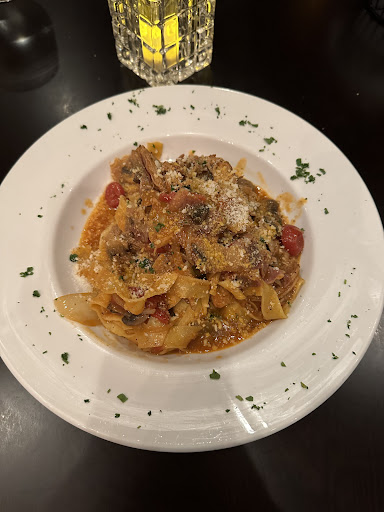 My friend had ordered the Pappardelle con vitello alla boscaiola. The presentation of the dish was great the only thing that doesnât make it a perfect presentation is there were a few splash spots of sauce that could have been wiped away and a onion slice that could have been placed a bit better. Now the taste of this dish was spot on and is what you would expect when you order this dish. We had also ordered the tiramisu, and I donât order this very often but I thought but this one was perfect.
