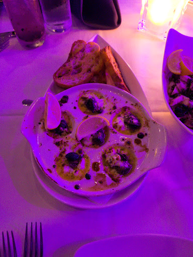 We had the escargot and grilled Octopus to start. The apps were good, but we've had better. For our main entrees we had the skirt steak and the lamb chops. The skirt steak was ok, slightly overcooked and tough. Usually we are expecting this to be medium or mid-rare, but it came about mid-well. The lamb chops were really good, they had a nice char to them which I liked and were cooked to a good temp. The micro greens / salad that came with the lamb chops was delicious. We also ordered sides of whipped potatoes and a shrimp risotto. The whipped potatoes are anything but whipped, would not recommend. They were bland and not whipped, more like crushed. Would not consider them mashed either, there were still large chunks of potato still in the dish. The risotto was very nice. For the deserts we ordered the bread pudding and the orange blossom. The bread pudding was too tough to eat. The orange blossom was probably the best thing we had all night. It had a combination of textures and was not overly sweet, by far the best thing of the night.